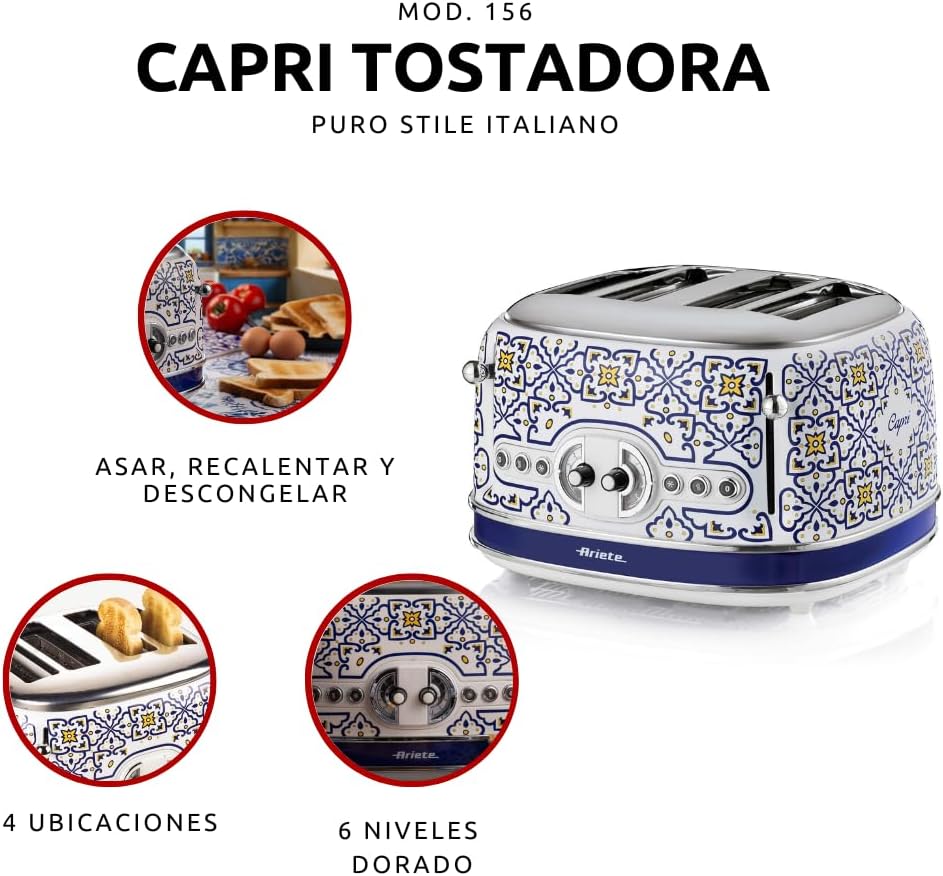 - 4 Scheiben gleichzeitig: Der Capri Toaster hat 4 Brotschlitze mit separaten Steuerungen als Paar, um die Brotscheiben in den 6 Röststufen unabhängig zu bräunen;