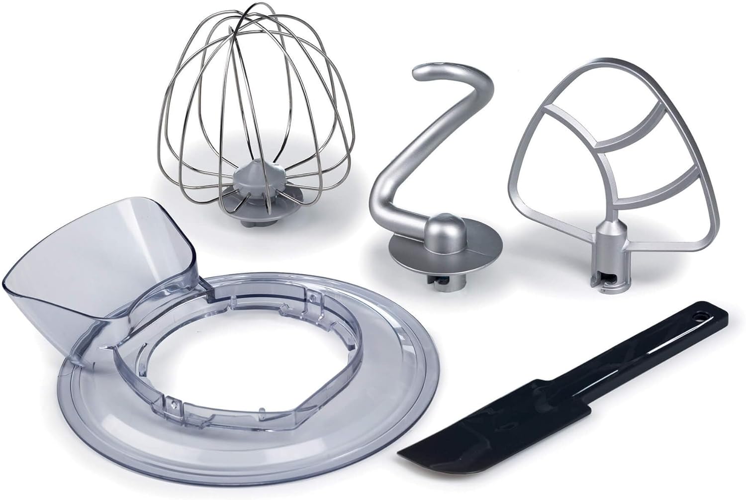 - Kneten, Mixen und Aufschlagen: dank der 3 Aufsätze (Knethaken, Rührbesen und Schneebesen) ist es möglich, sowohl dicke Brot- und Pizzateige als auch weiche Teige wie Rührteige, Sahne und Cremes zu mixen, zu kneten und aufzuschlagen