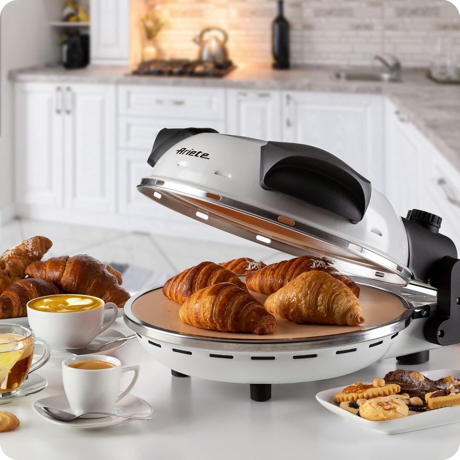 - 5 Kochstufen: Der einstellbare Thermostat ermöglicht das Backen leckerer salziger Torten, Toasts, Panzerotti oder sogar das Erwärmen von Speisen vor dem Servieren am Tisch