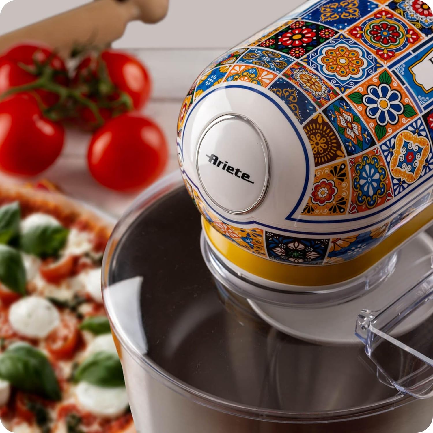 - Technologie: Der Motor mit 2400 Watt, die 7 Geschwindigkeiten mit Pulsfunktion und die drei Schneebesen zum Kneten, Schneiden, ermöglichen die Verarbeitung jeder Art von Zubereitung, sowohl flüssig als auch konsistent;