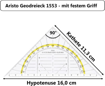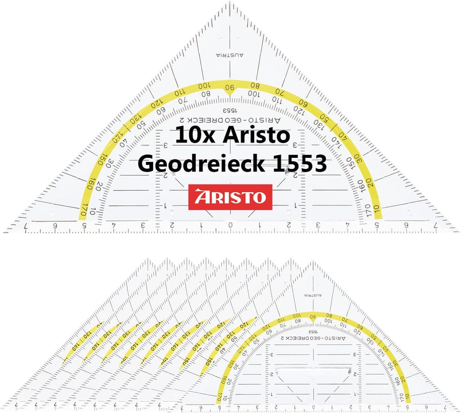 - Das Geometriedreieck von Aristo ist Massstab, Winkelmesser, Symmetrie-Massstab und Parallel-Lineal in einem und damit in Schule, Studium und Beruf vielfältig einsetzbar