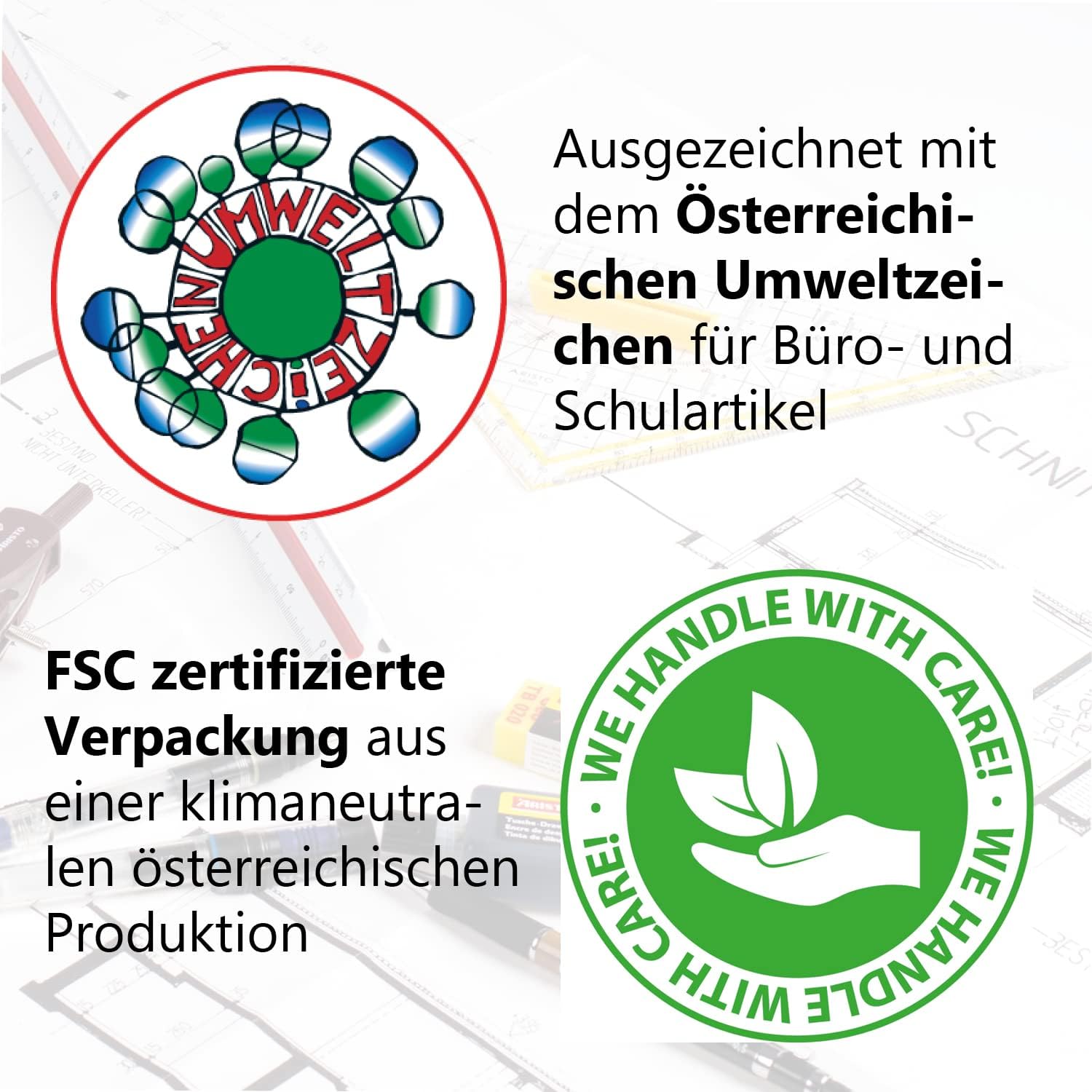 - Das Winkeldreieck entspricht der ÖNORM A2134 und ÖNORM A2131. Die FSC-zertifizierte Kartonverpackung ist klimaneutral. Das Produkt wurde mit dem österreichischen Umweltzeichen ausgezeichnet