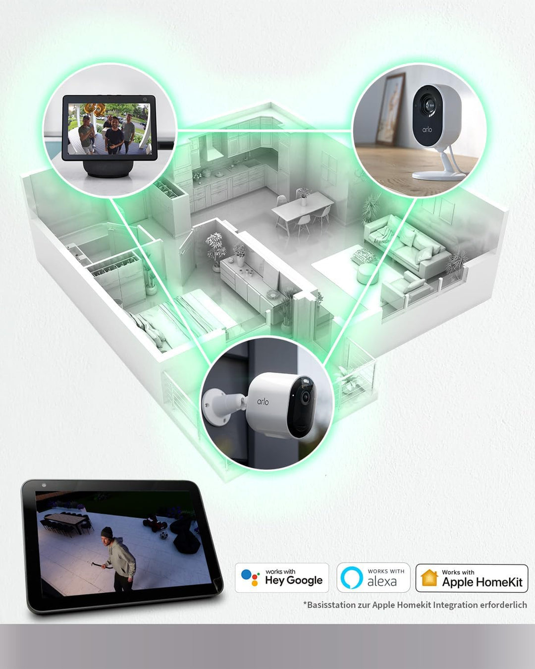 - SMART HOME: Pro 5 ist mit Smart Home und Smart-Geräten kompatibel, da unsere Arlo Secure App auf Ihrem Mobiltelefon, Smartwatch oder sogar Ihrem Tablet verwendet werden kann; Bei Arlo verfügen wir über mehr Plattformintegrationen als jede andere