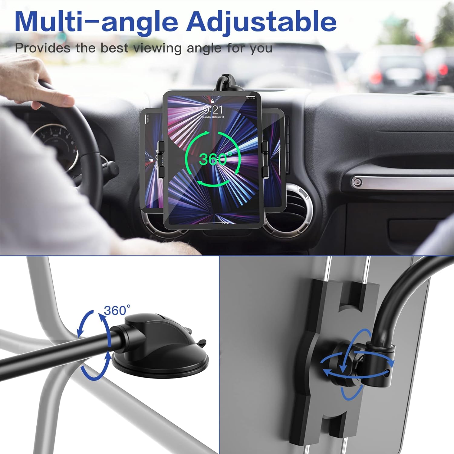 - 【Super stabil】Der iPad autohalterung saugnapf enthält einen superstarken saugnapf, einen anti-shake-stabilisator und einen verschmutzten schwanenhals. geniessen sie Ihre fahrt im auto mit freien händen.
