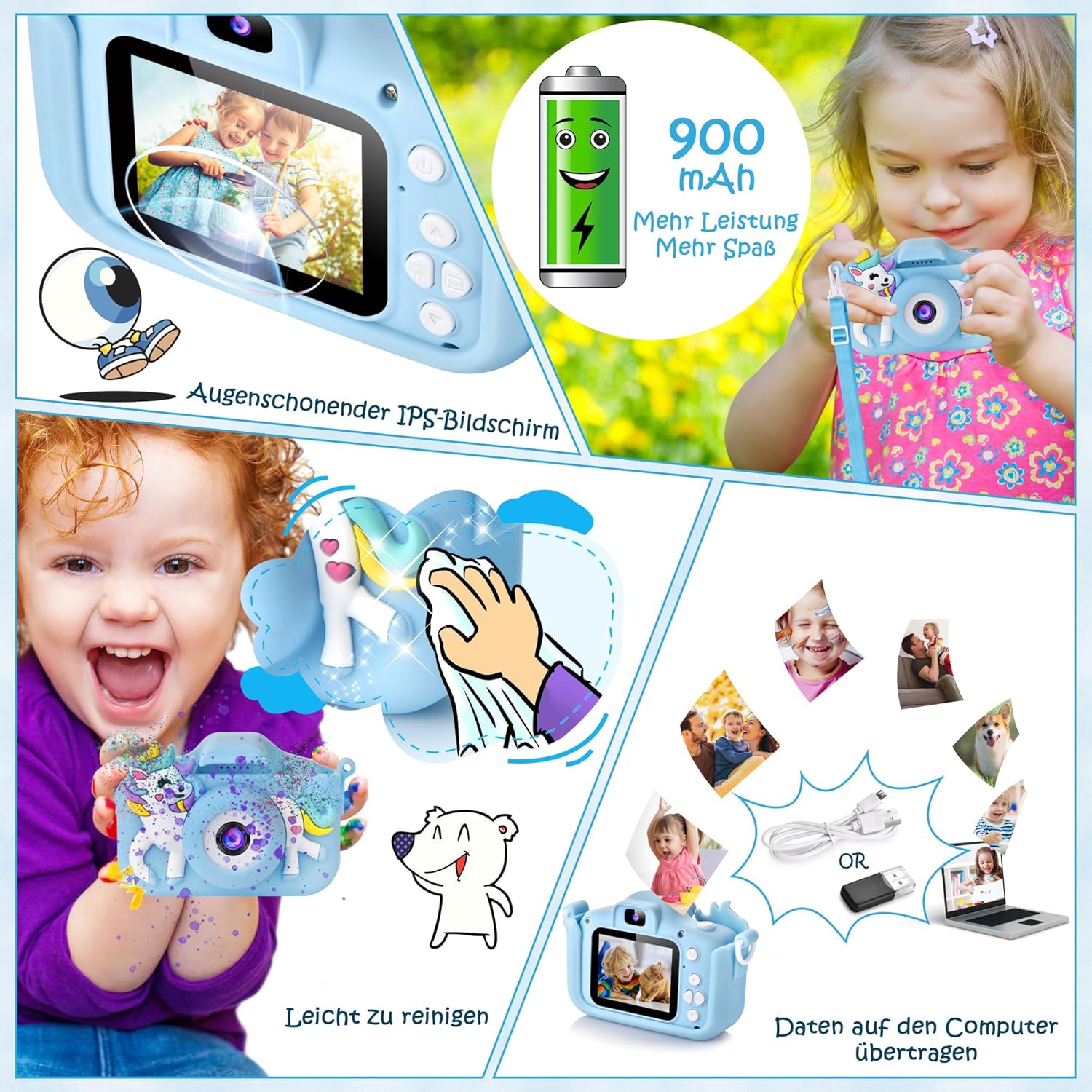 - 【Warme Tipps】: Für ein optimales Erlebnis mit der Kinderkamera konsultieren Sie bitte zuerst die Bedienungsanleitung oder schauen Sie unser Lehrvideo. 【Vorschlag】: Nach dem Einschalten stellen Sie "Datum und Uhrzeit" auf Ihre lokale Zeit ein und
