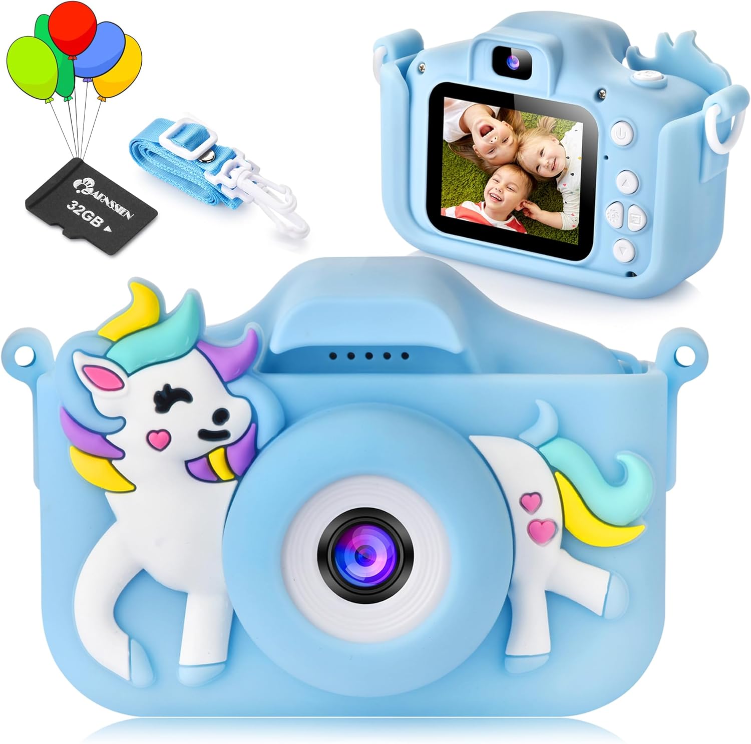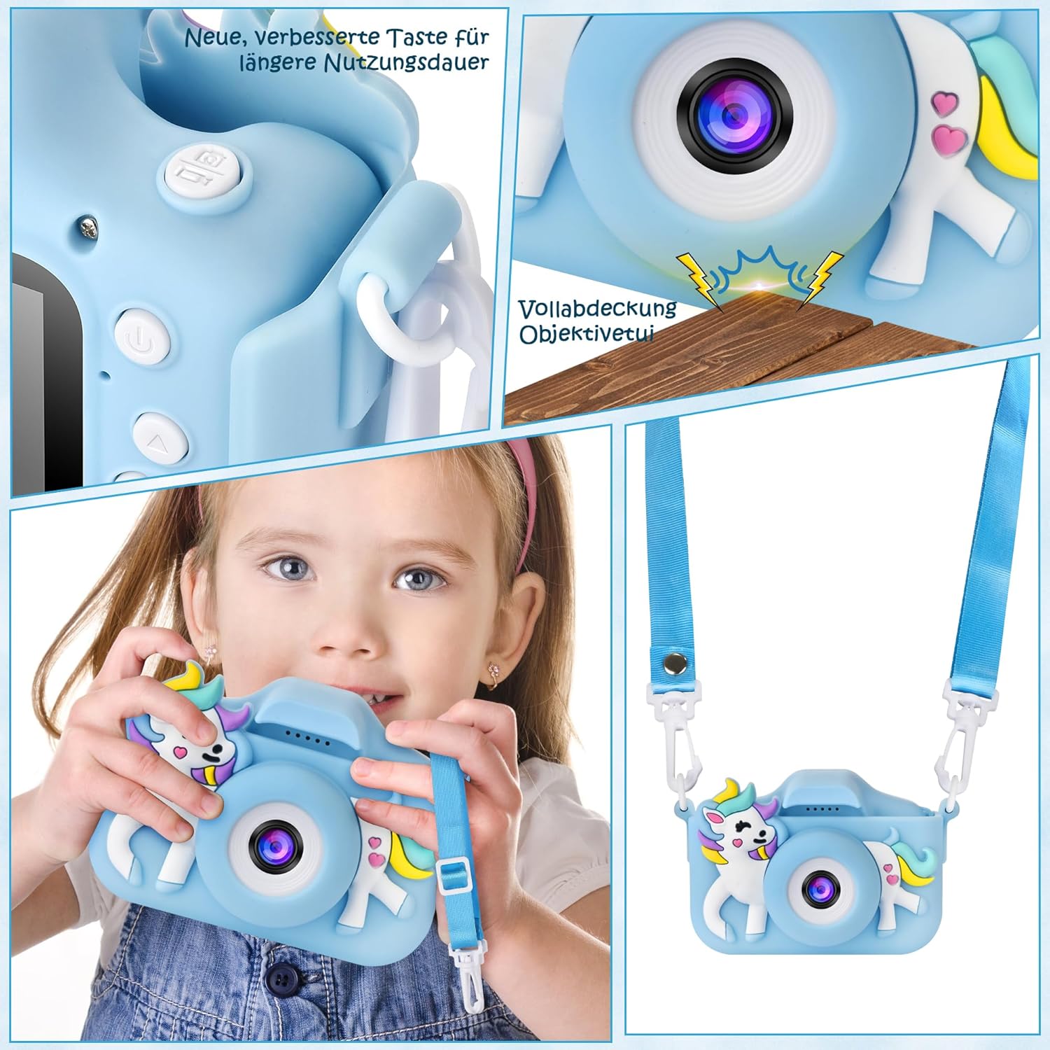 - 【Kindheitserlebnisse festhalten】: Mit einem leistungsstarken Akku und Dual-Kamera-Linse können Kinder bis zu 2-4 Stunden Fotos machen oder Videos aufnehmen. Im Lieferumfang enthalten sind ein USB-Kabel, Kartenleser und eine 32GB TF-Karte für