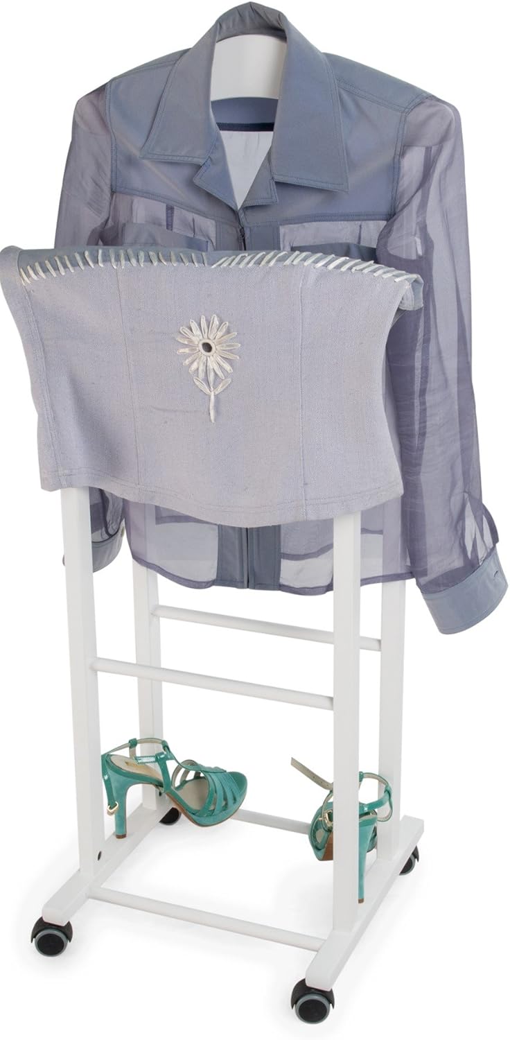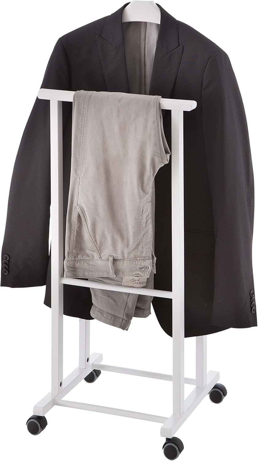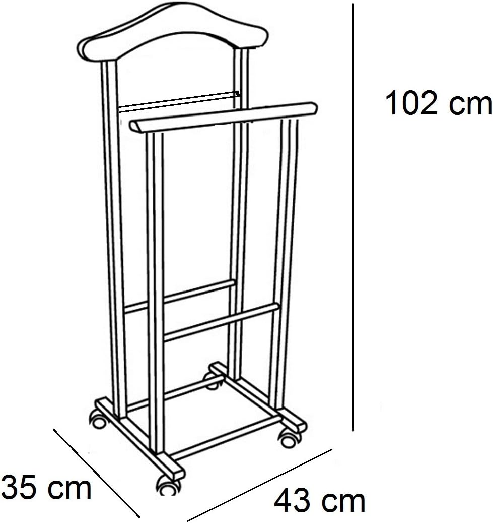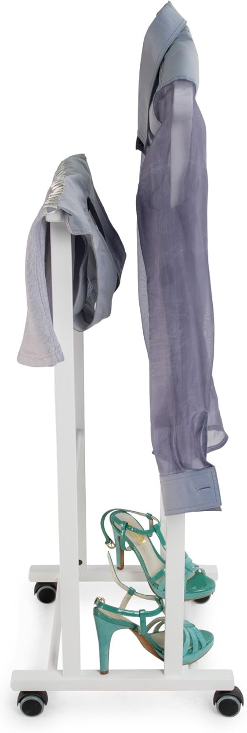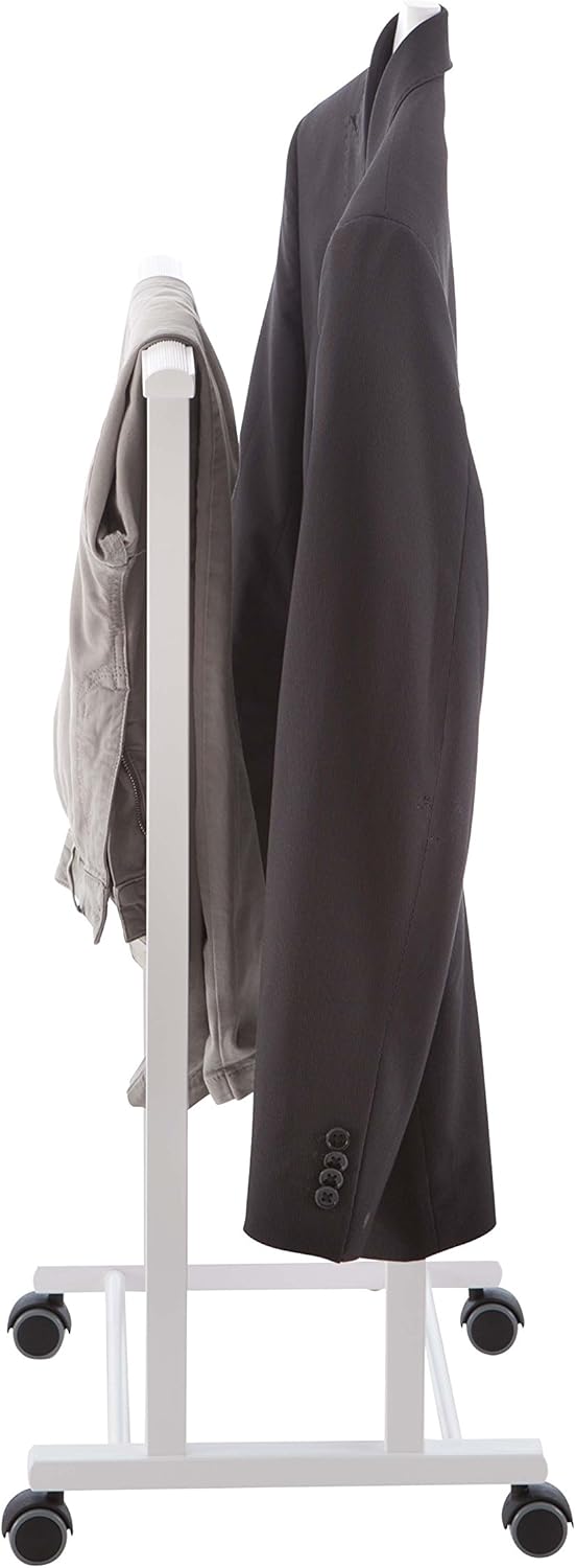• Schwenkbare Rollen aus Gummi zur einfachen Umpositionierung, bestehend aus einem Kleiderbügel und einer Kleiderstange für Hosen.