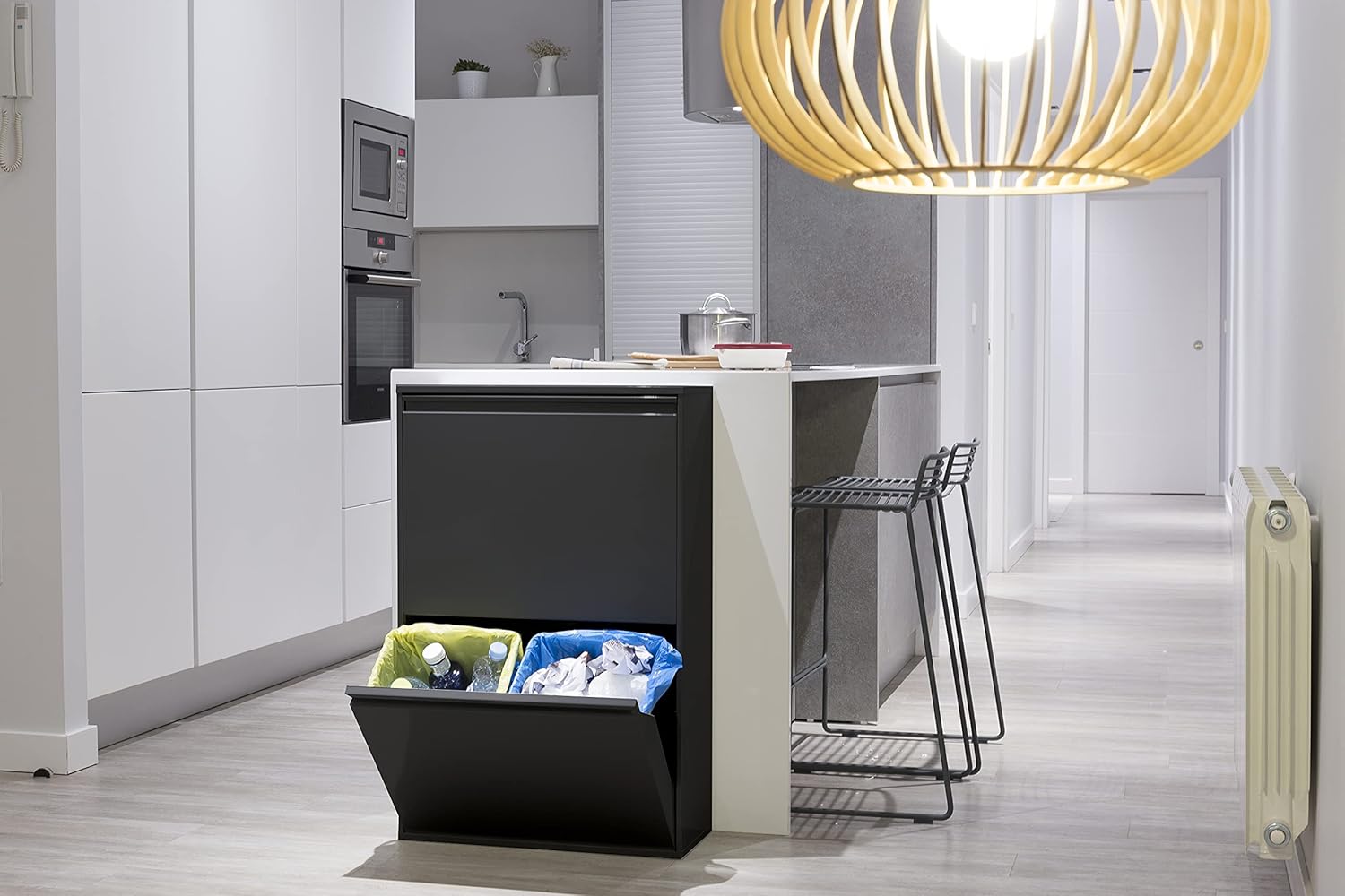 - KOMBINIERT MIT JEDER DEKORATION: Dank seines Designs, passt dieser Mülltrennschrank sowie in die Küche, als auch ins Büro oder andere Zimmer. Da er nur 24,5 cm tief ist, wird viel Platz gespart. Masse: 90,5 x 58,5 x 24,5 cm (hoch x breit x tief)