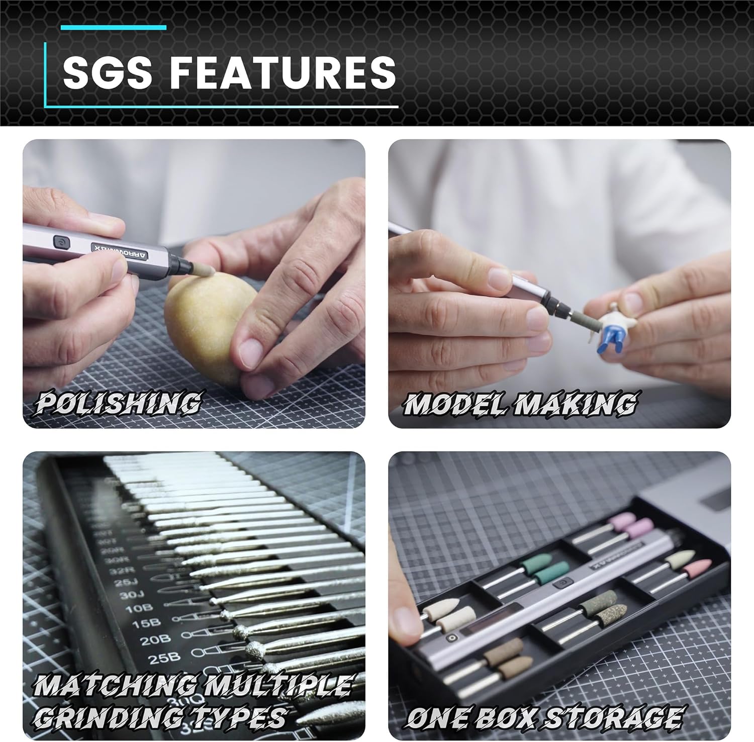 • ✅[INTUITIVE UND EINFACHE BEDIENUNG] Unser elektrischer Gravurstift vereinfacht den Bedienungsvorgang und ermöglicht es, die Geschwindigkeit und Richtung des SGS ULTRA einfach mit einer Hand zu ändern. Die Einschalttaste wechselt die Richtung und die