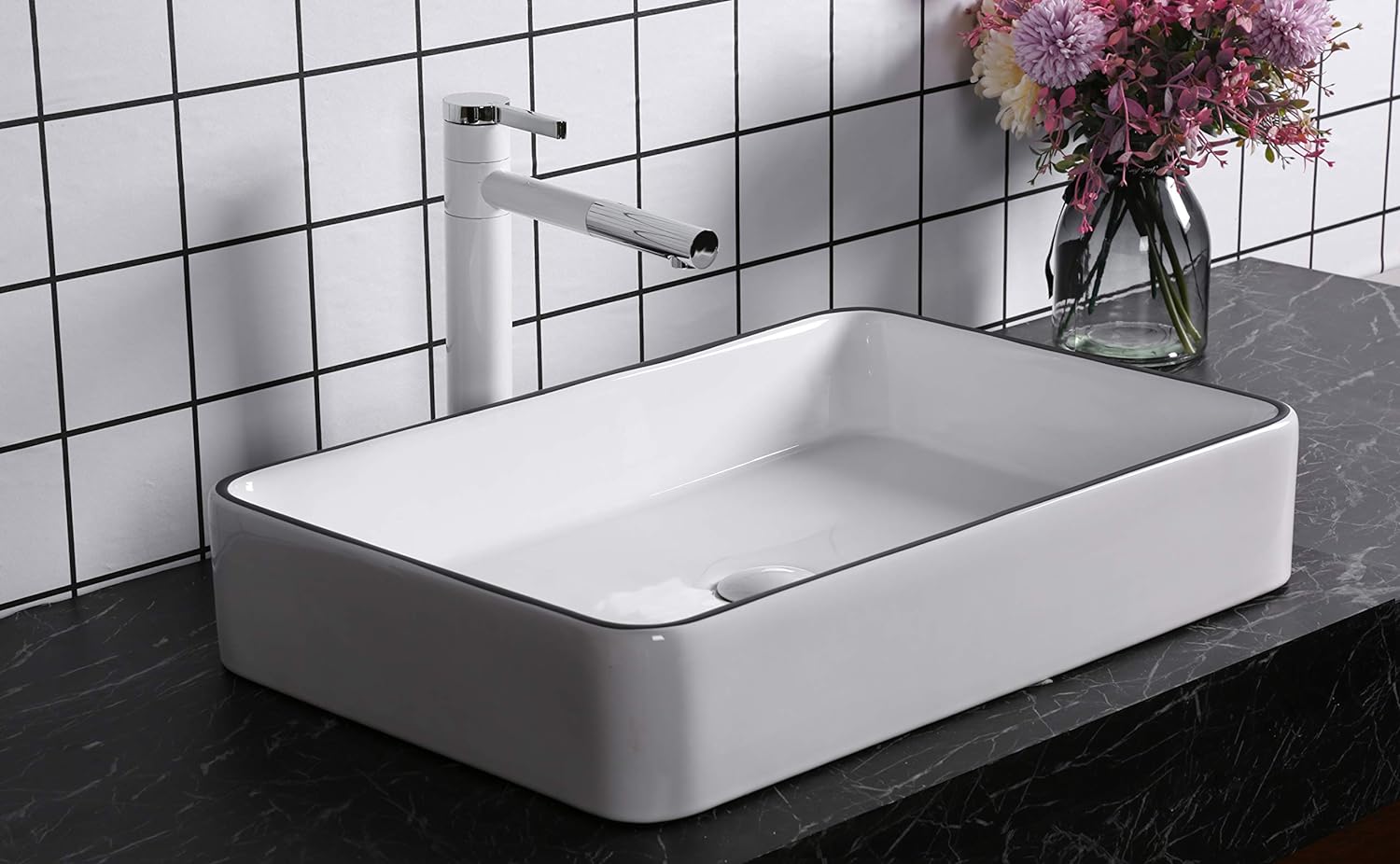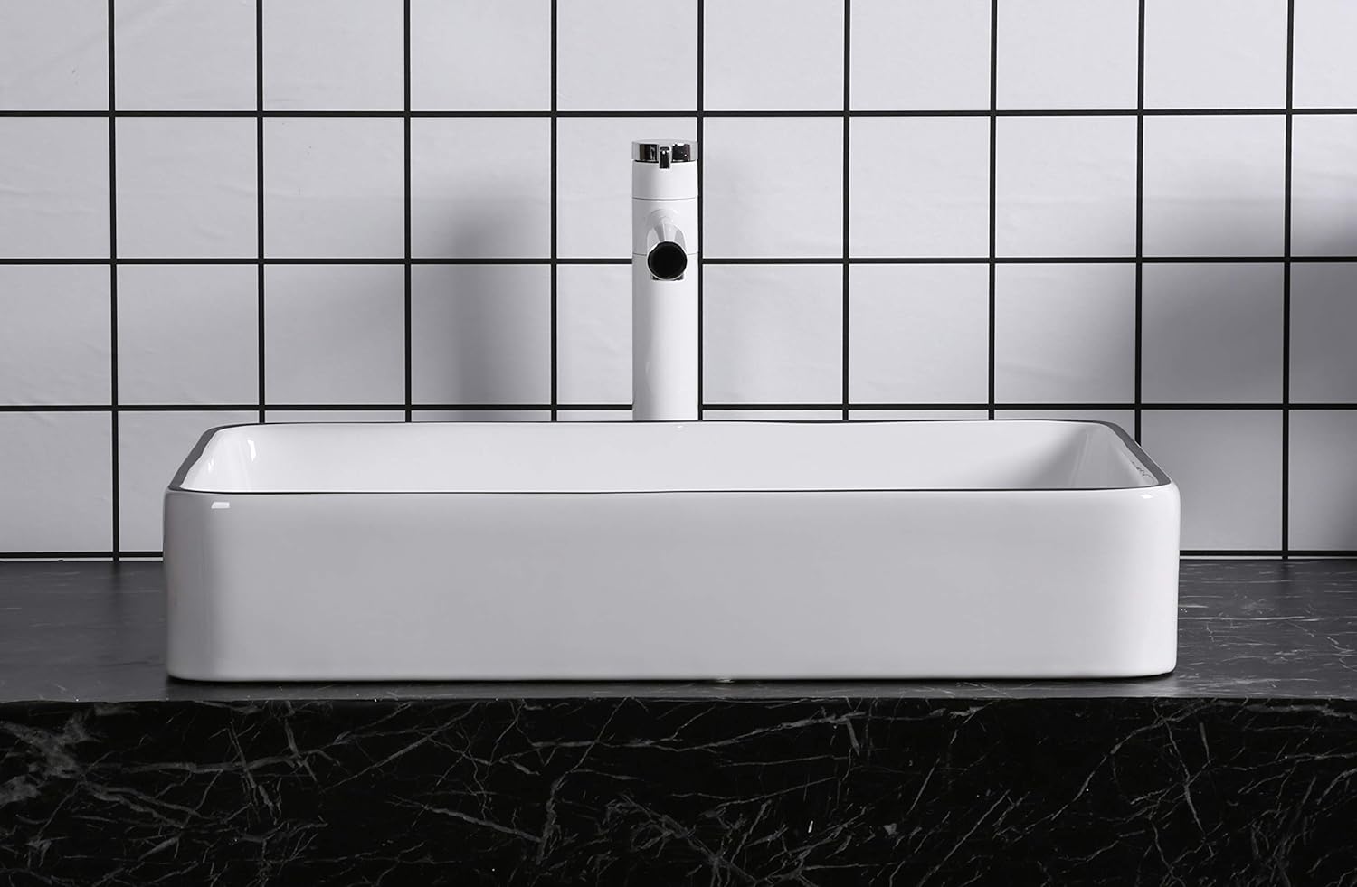 Art-of-Baanยฎ Premium Waschbecken aus Keramik I hochwertiges Handwaschbecken mit Lotus-Effekt I eckig