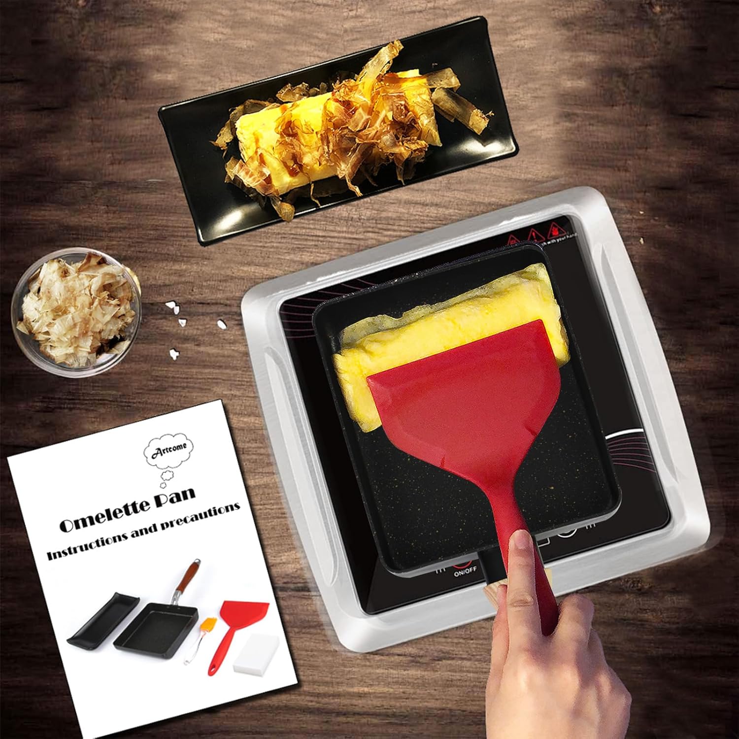 - Komplettes Set: 1 Schwarz Omelett-Pfanne, 1 Silikon-Spatel, 1 Silikon-Pinsel, 1 schwarze Platte und 1 magischer Schwamm-Radierer