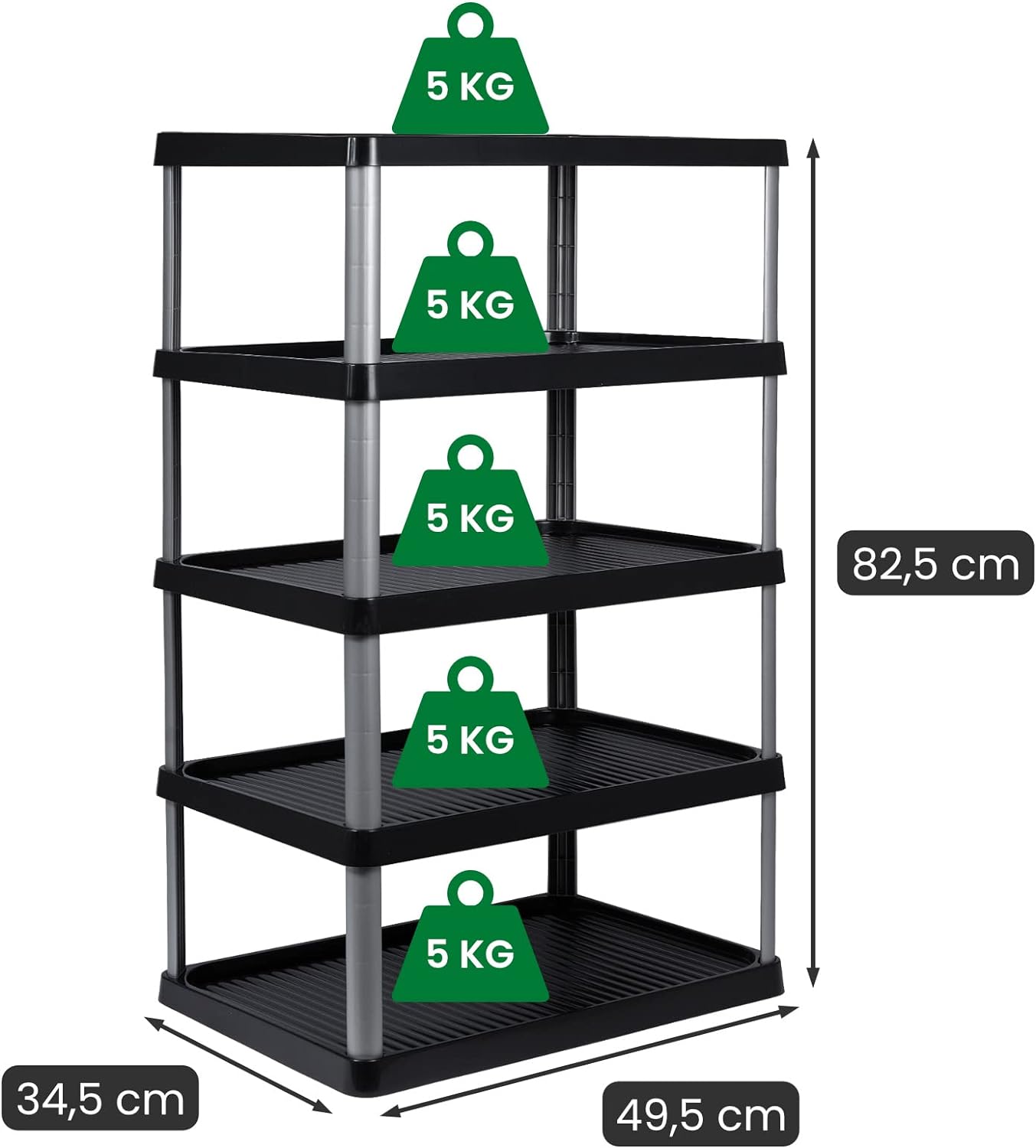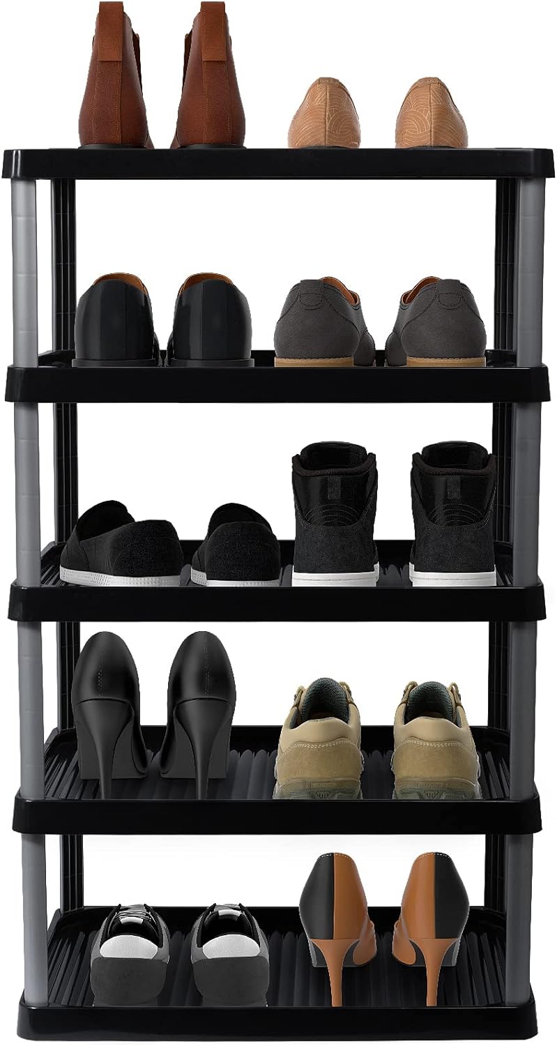 ARTECSIS Schuhregal schmal 5 Ebenen Schwarz I Schuhablage aus Kunststoff 49,5x34,5x82,5cm, 5 Ebenen
