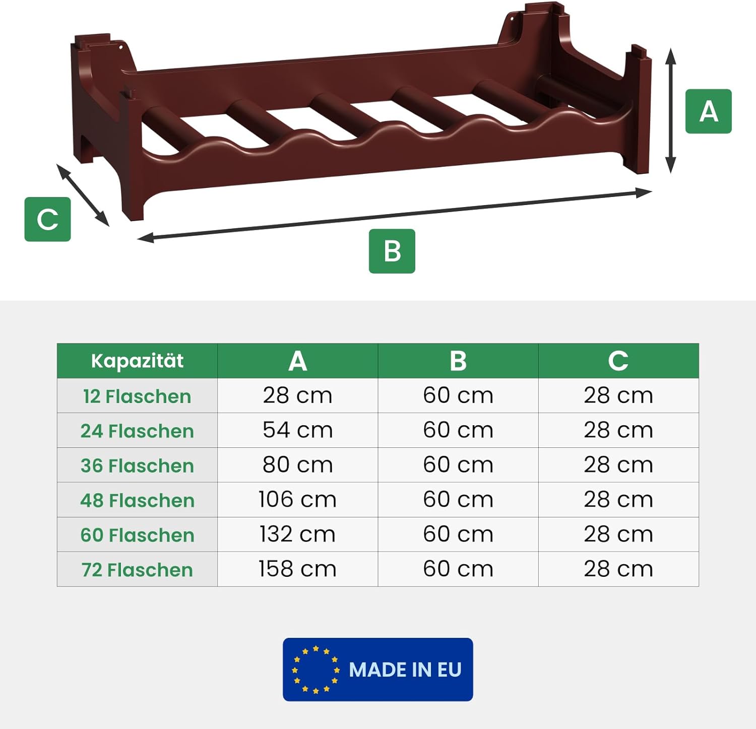 • Für die platzsparende und praktische Lagerung von Wein- und Getränkeflaschen. Der widerstandsfähige Kunststoff garantiert eine lange Lebensdauer.