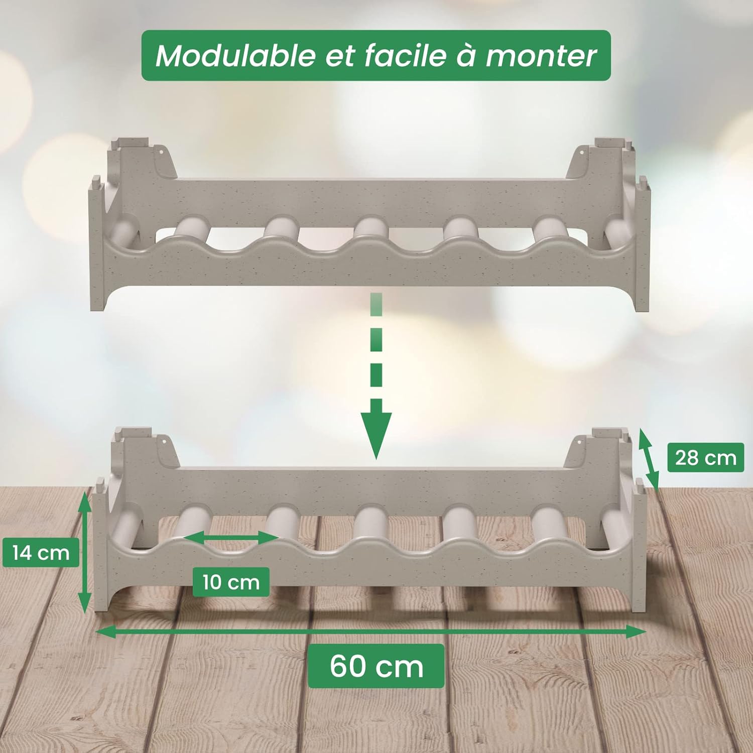- Modular und erweiterbar - Set bestehend aus 10 Elementen für jeweils 6 Flaschen, beliebig erweiterbar