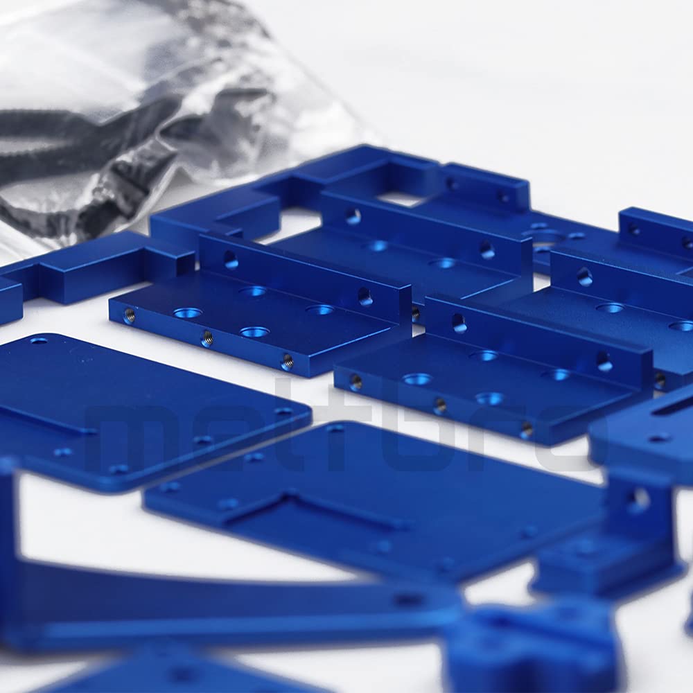 • Im Lieferumfang sind nahezu alle Teile aus Aluminium vorhanden, die die Teile aus Plastik ersetzen sollen (blau eloxiertes Aluminium).