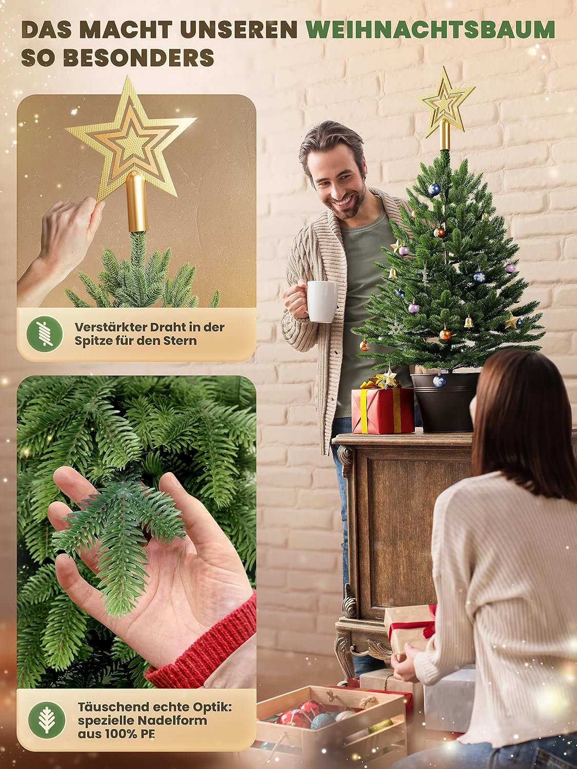 - Vielseitige Einsatzmöglichkeiten: Der Baum ist perfekt als Dekoration auf Tischen, in Ecken oder am Eingang geeignet und bringt weihnachtliche Stimmung in jeden Raum. Er eignet sich hervorragend als künstlicher Weihnachtsbaum und als Teil Ihrer