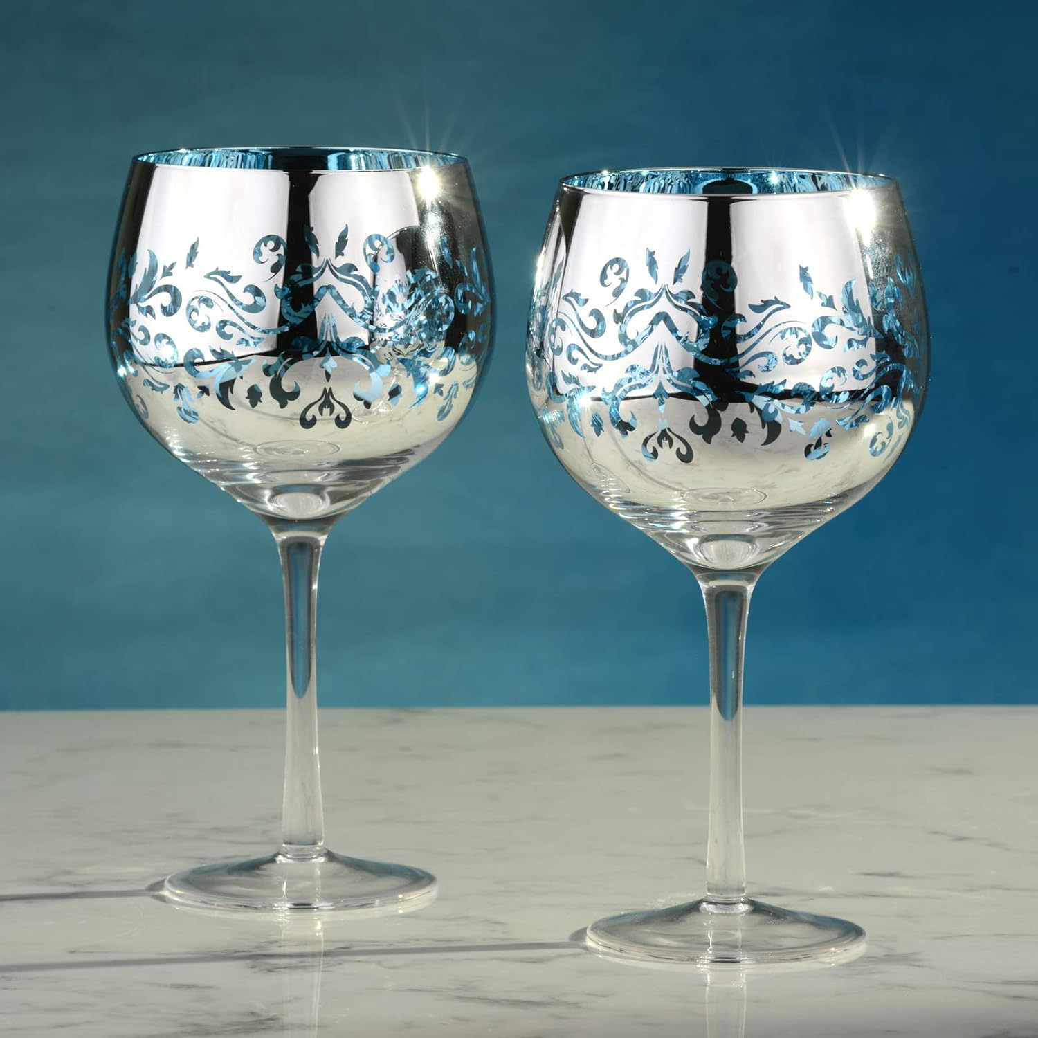 - EIN KULTIVIERTES GESCHENK: Dieses Gläserset ist eine raffinierte, reizvolle und luxuriöse Geschenkidee - das Set wird als Geschenk verpackt geliefert, so dass nur noch die Verpackung fehlt! Galvanisiert mit einem blau schimmernden, filigranen Motiv um