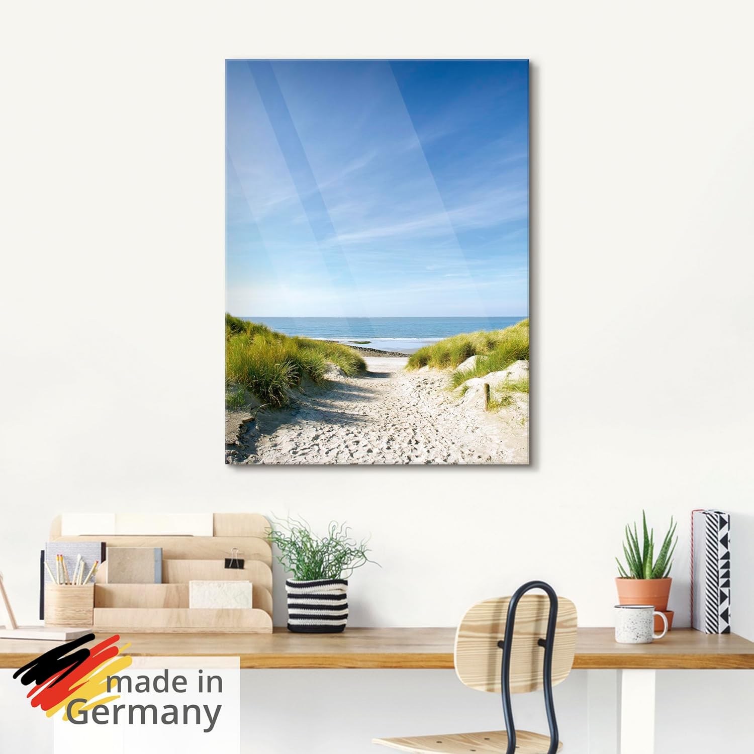 - MONTAGE: Durch die vormontierte Aufhängung kann das Bild aus Glas direkt aufgehangen werden. An der Wand ist der Aufhänger vom Glasbild verdeckt (Wandschrauben o. Dübel nicht enthalten)