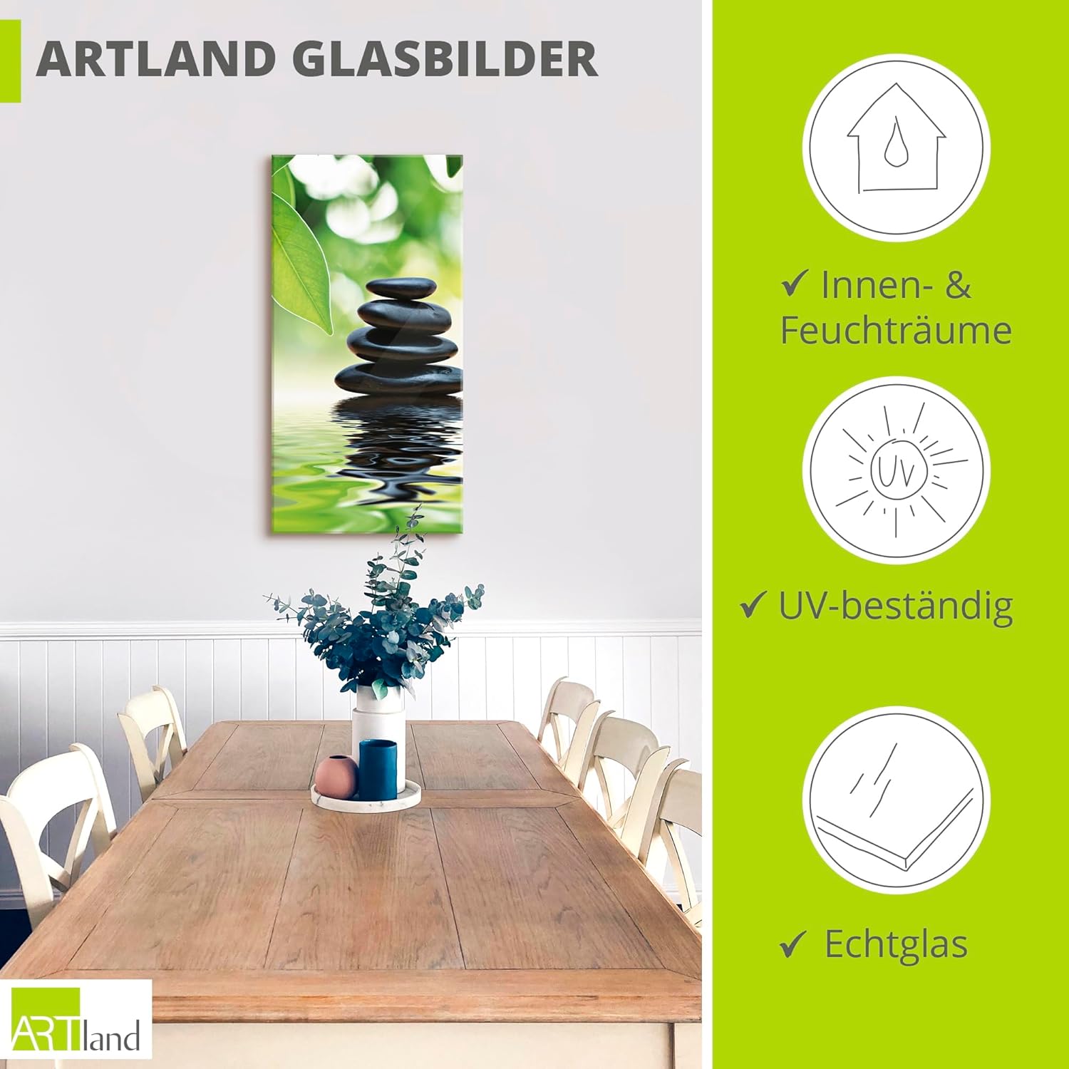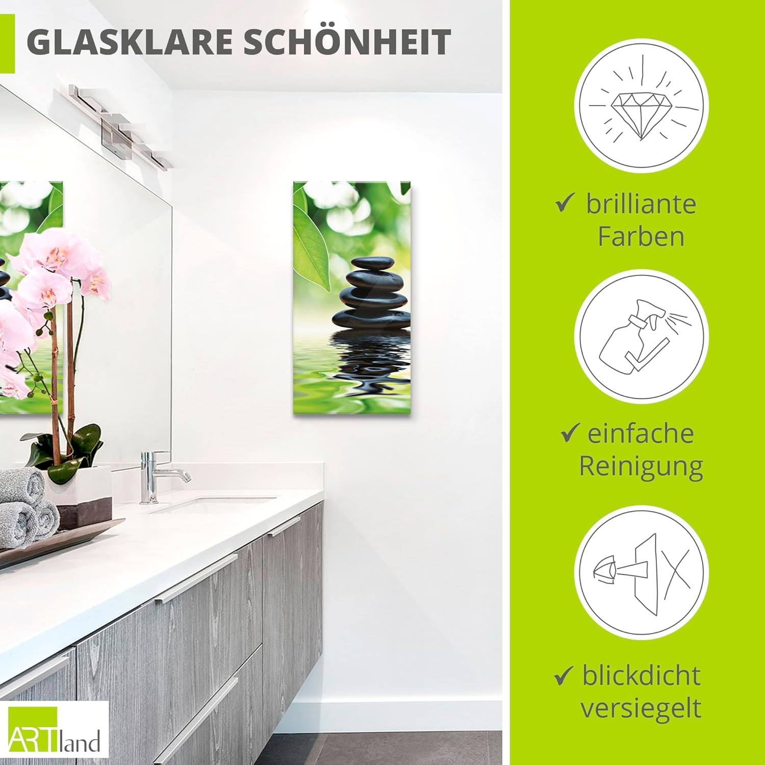 - DRUCKQUALITÄT: Das Glasbild wird rückseitig mit UV-beständigen Farben bedruckt, die nicht nur für das beste Druckergebnis sorgen, sondern auch geruchslos und frei von jeglichen Schadstoffen sind