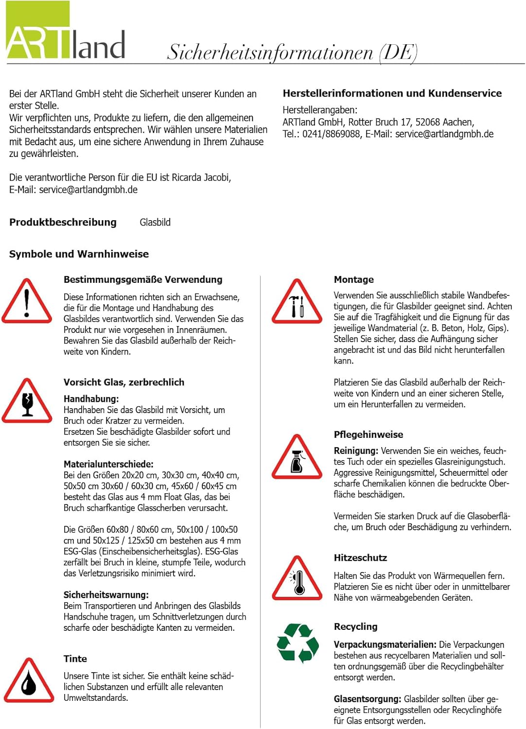 - PRODUKTION: Unsere Glasbilder kommen aus eigener Produktion in Aachen Made in Germany. Bereits seit 1967 ist unser Familienunternehmen Spezialist im Bereich Wanddekoration