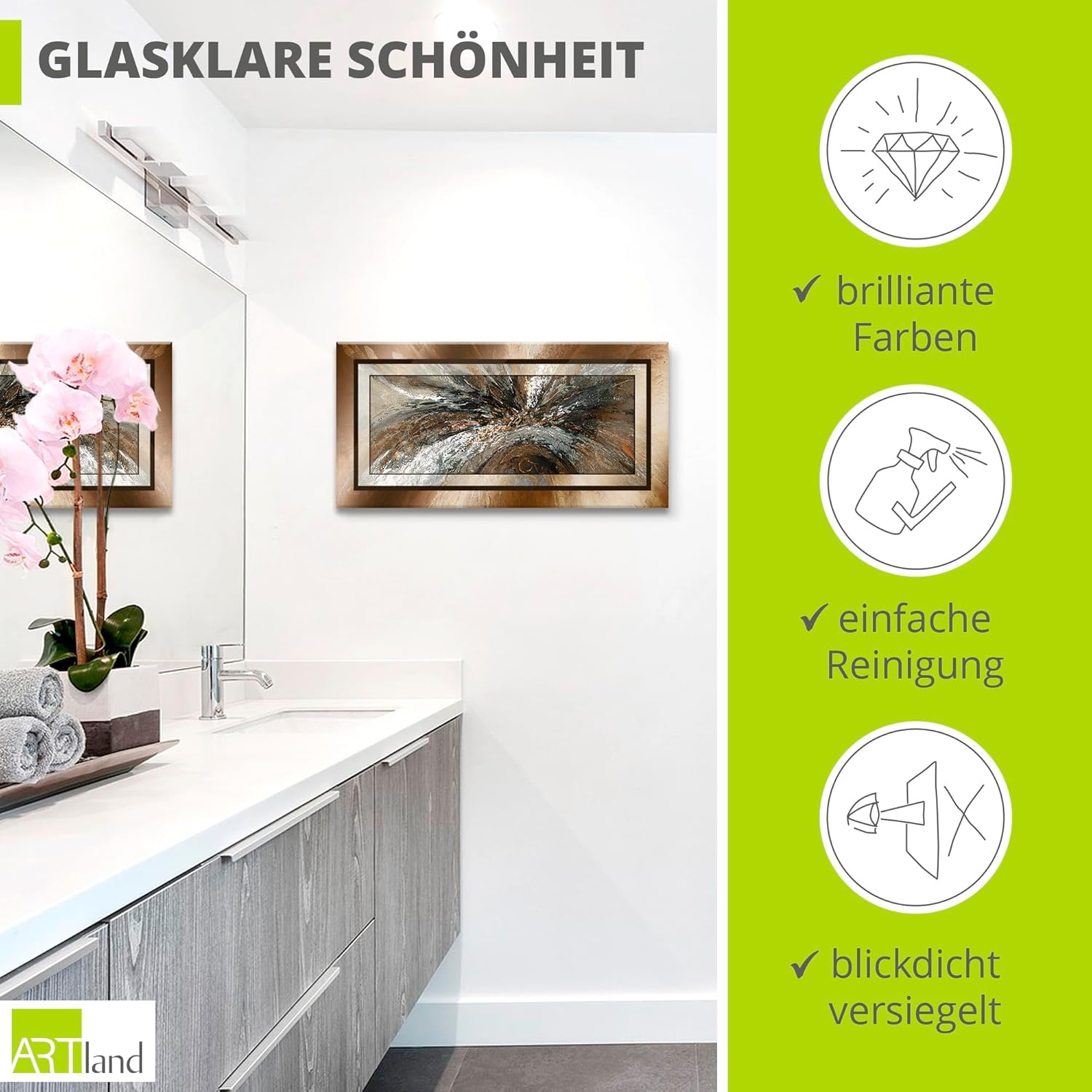 - VERWENDUNG: Unsere Glasbilder aus 4 mm Floatglas eignen sich für alle Wände in Wohnzimmer, Schlafzimmer, Esszimmer, Flur, Küche und Bad - Direkt fertig zum Aufhängen geliefert