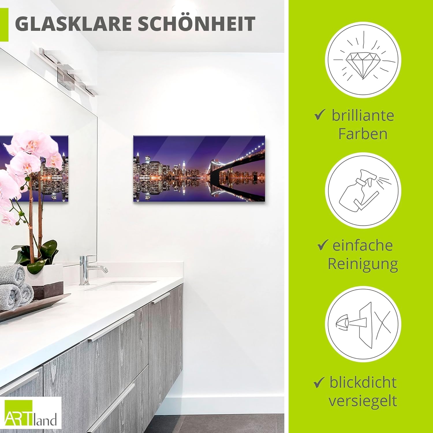 - VERWENDUNG: Unsere Glasbilder aus 4 mm Floatglas eignen sich für alle Wände in Wohnzimmer, Schlafzimmer, Esszimmer, Flur, Küche und Bad - Direkt fertig zum Aufhängen geliefert