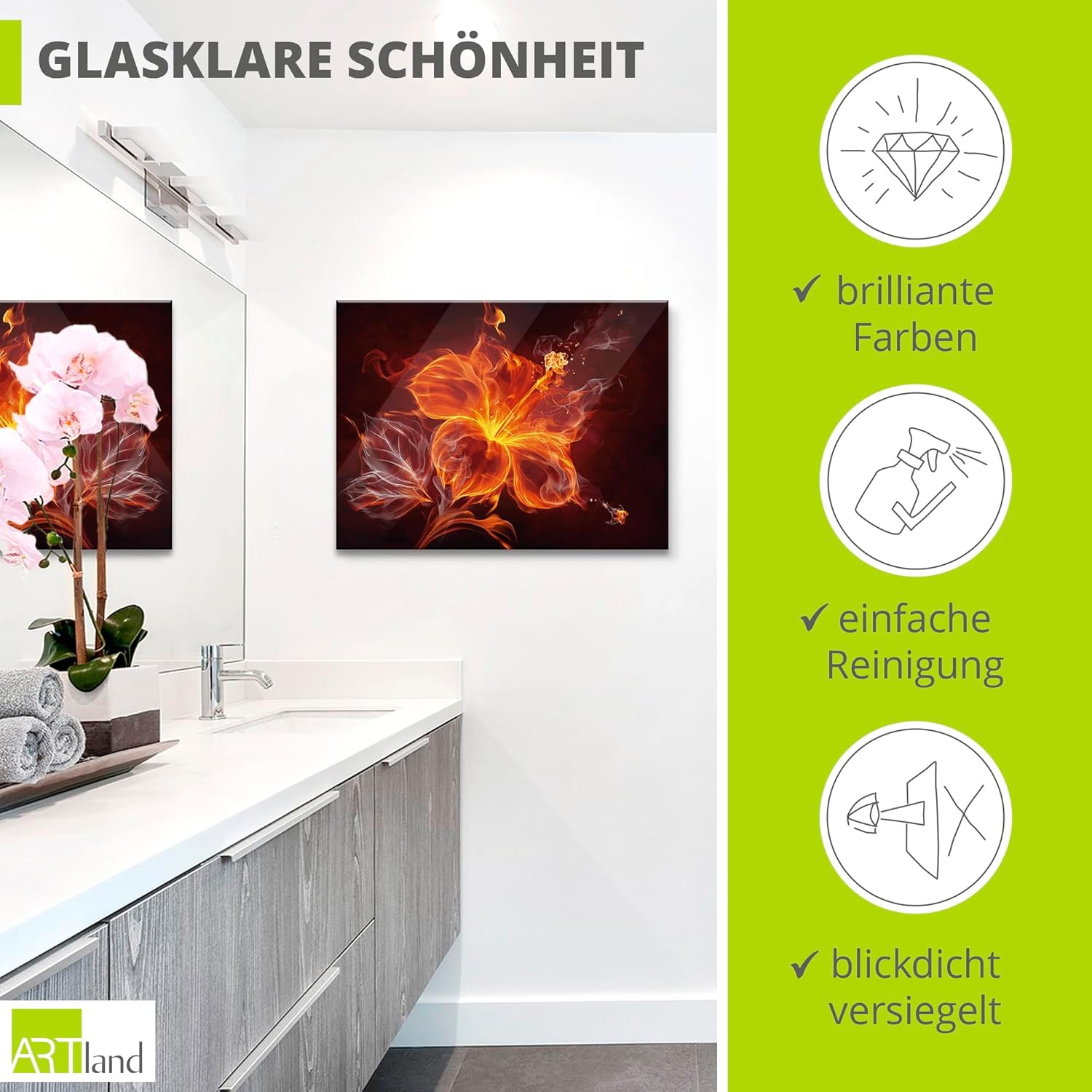 • VERWENDUNG: Unsere Glasbilder aus 4 mm Sicherheitsglas (ESG) geeignet sich für alle Wände in Wohnzimmer, Schlafzimmer, Esszimmer, Flur, Küche und Bad - Direkt fertig zum Aufhängen geliefert