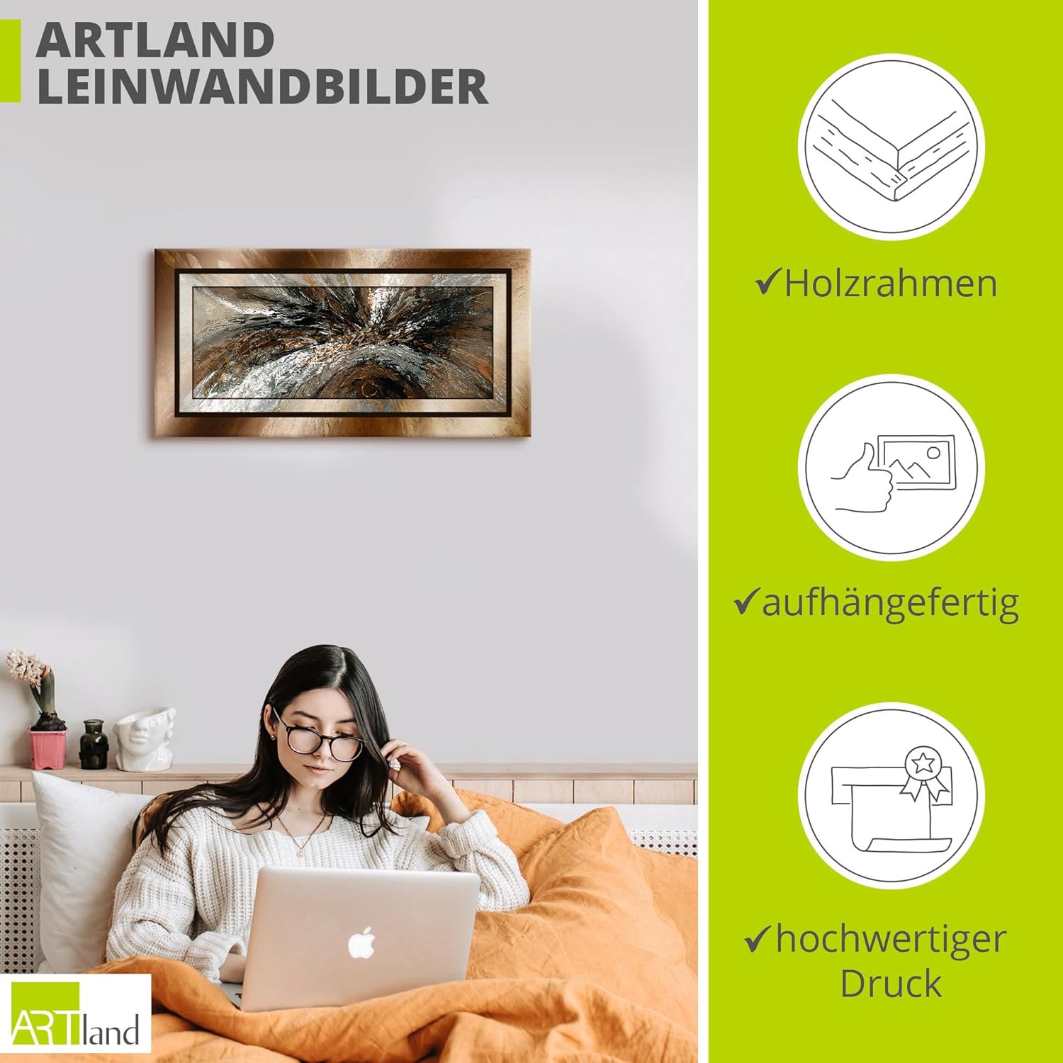 - DEKO: Unsere Leinwandbilder auf Keilrahmen eignen sich für alle Wände im Wohnzimmer, Schlafzimmer, Esszimmer, Flur und Büro. Der Leinwanddruck als Dekoration in Ihrer Wohnung - Fertig zum Aufhängen