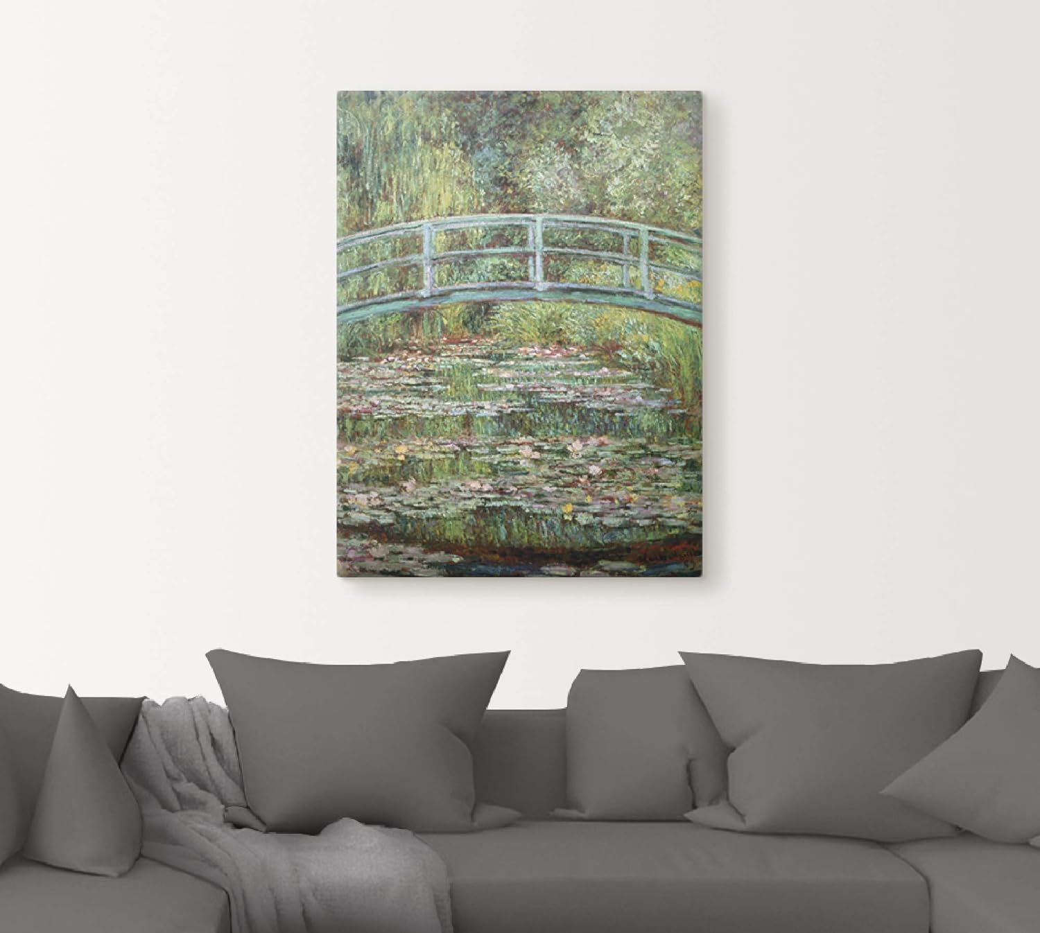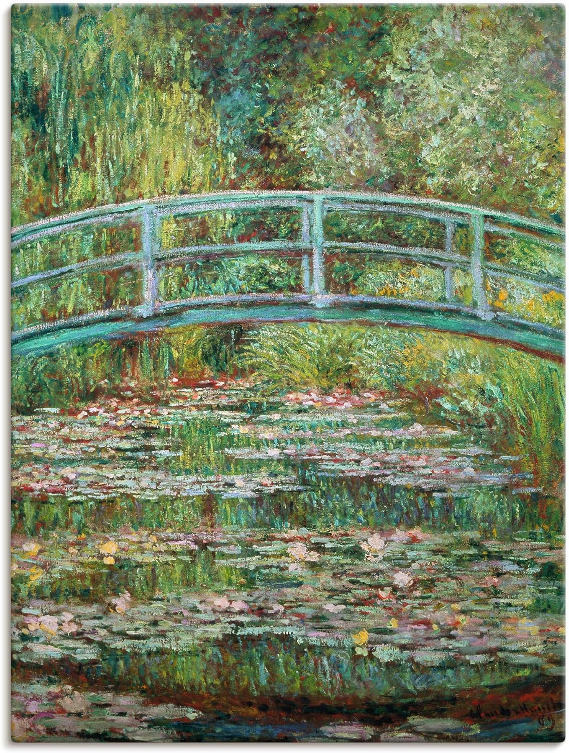 ARTland Leinwandbild Wandbild Bild auf Leinwand 60x80 cm Wanddeko Teich Pflanzen Seerosen Japanische