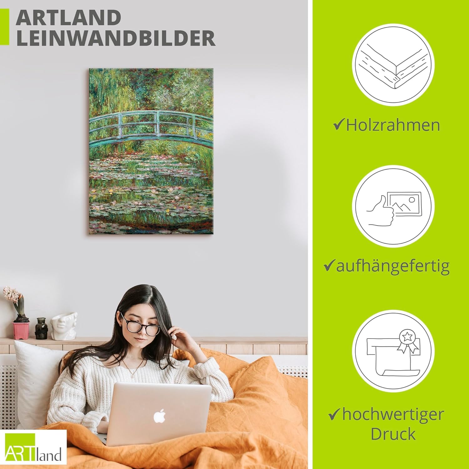 • MONTAGE: Das Bild aus Canvas kann durch die vormontierte Aufhängung direkt an die Wand gehangen werden. Der Aufhänger ist vom blickdichten Keilrahmenbild verdeckt. Inklusiv: Keile zum Nachspannen