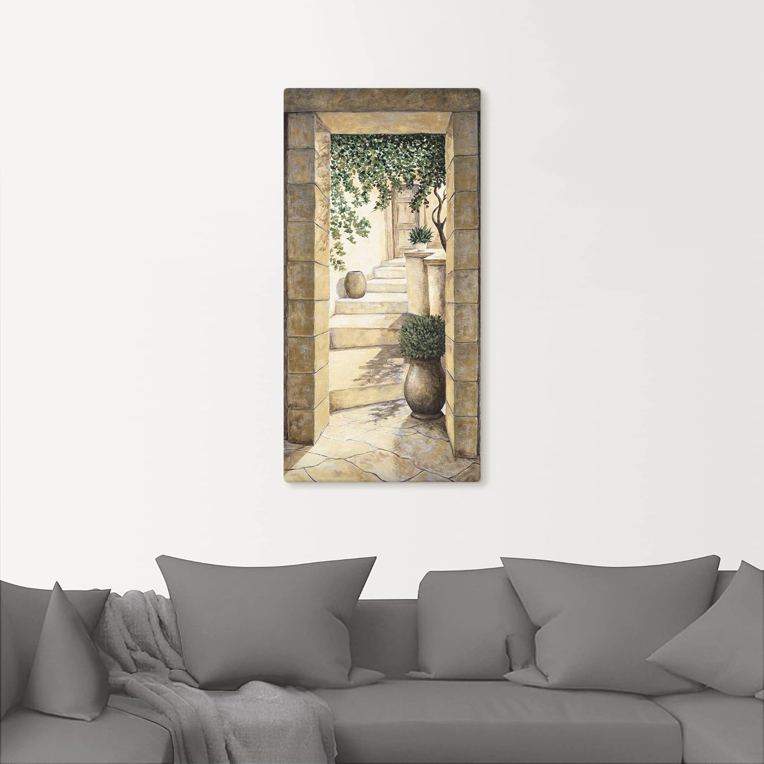 - MONTAGE: Das Bild aus Canvas kann durch die vormontierte Aufhängung direkt an die Wand gehangen werden. Der Aufhänger ist vom blickdichten Keilrahmenbild verdeckt. Inklusiv: Keile zum Nachspannen
