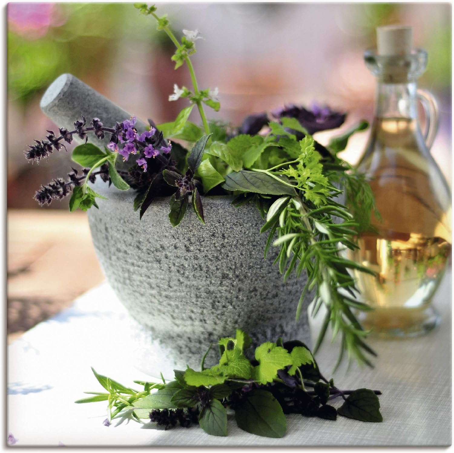 ARTland Leinwandbilder Wandbild Bild auf Leinwand 50x50 cm Kräuter Gewürze Mörser Lebensmittel Medit