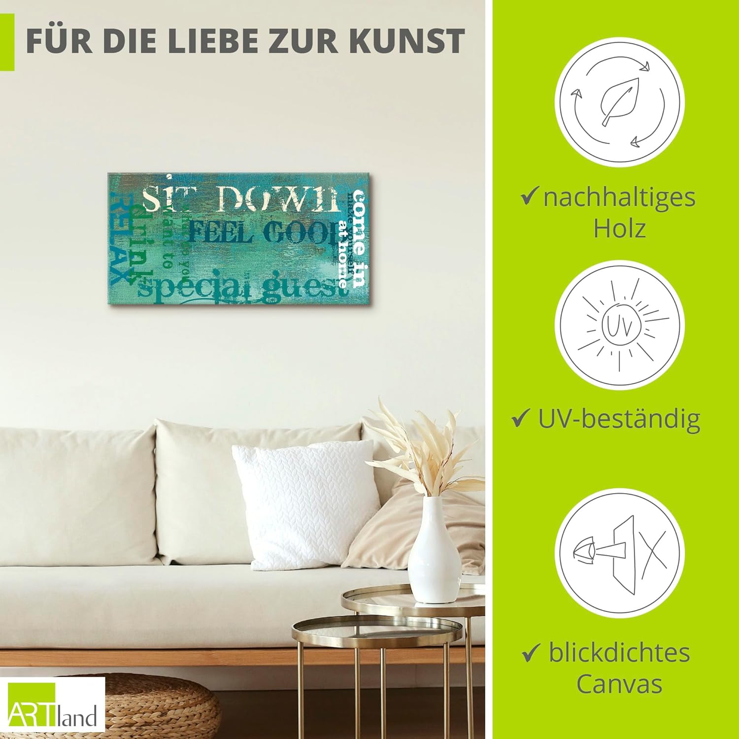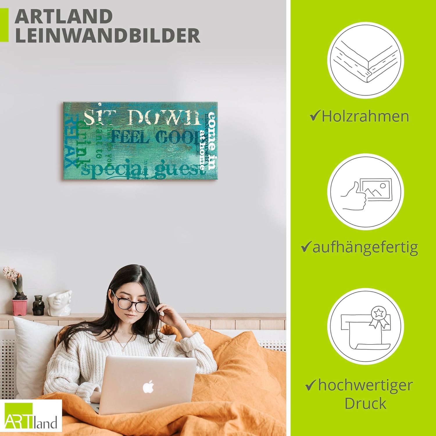• DEKO: Unsere Leinwandbilder auf Keilrahmen eignen sich für alle Wände im Wohnzimmer, Schlafzimmer, Esszimmer, Flur und Büro. Der Leinwanddruck als Dekoration in Ihrer Wohnung - Fertig zum Aufhängen