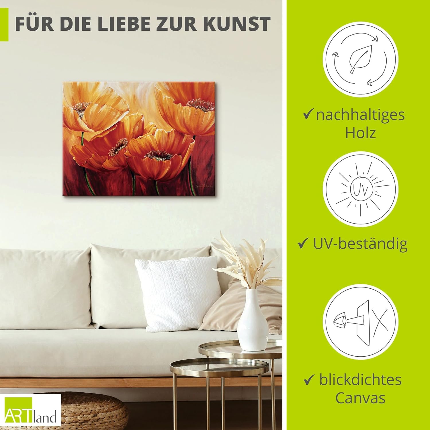 • DEKO: Unsere Leinwandbilder auf Keilrahmen eignen sich für alle Wände im Wohnzimmer, Schlafzimmer, Esszimmer, Flur und Büro. Der Leinwanddruck als Dekoration in Ihrer Wohnung - Fertig zum Aufhängen
