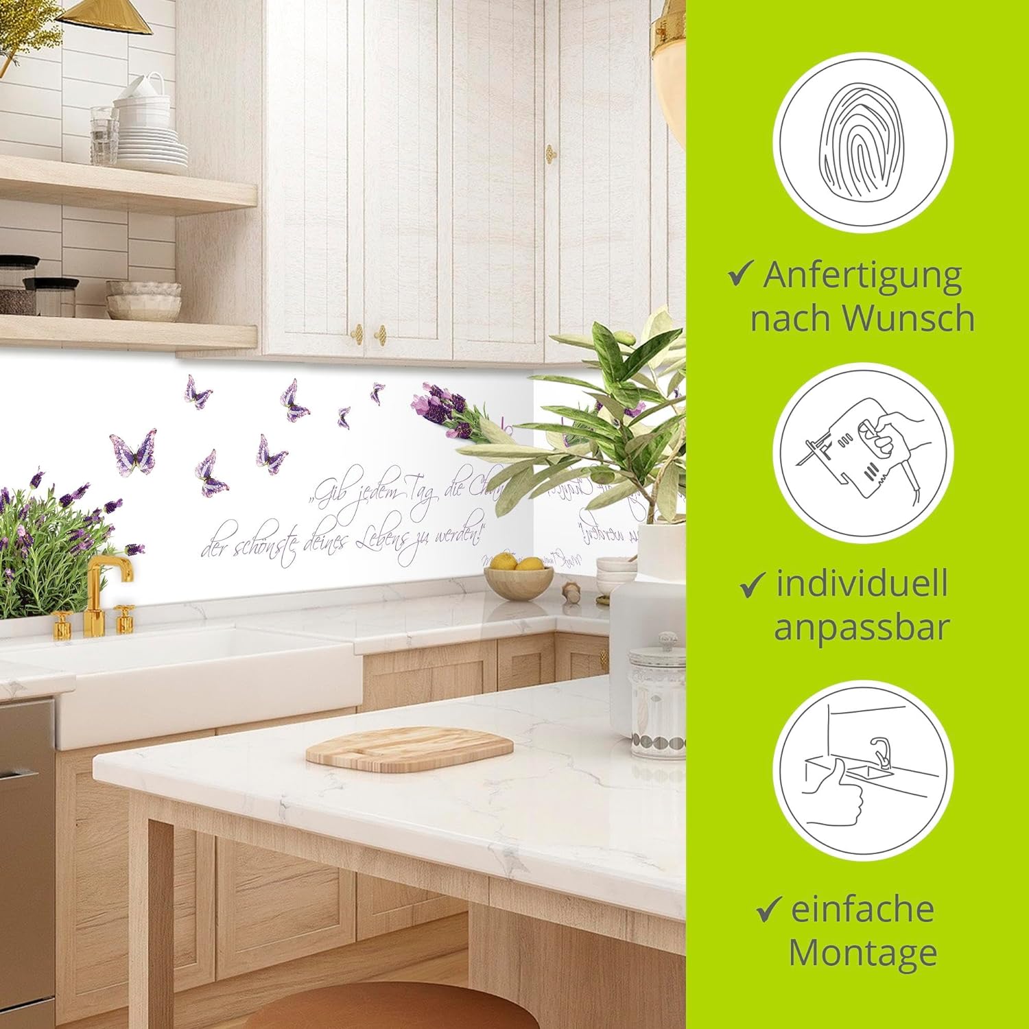 - SONDERWUNSCH: Gerne erfüllen wir Ihre individuellen Wünsche für einen Küchenspritzschutz - ob eigenes Motiv oder Wunschmass. Kontaktieren Sie uns über unser Verkäuferprofil artgalerie-bildershop