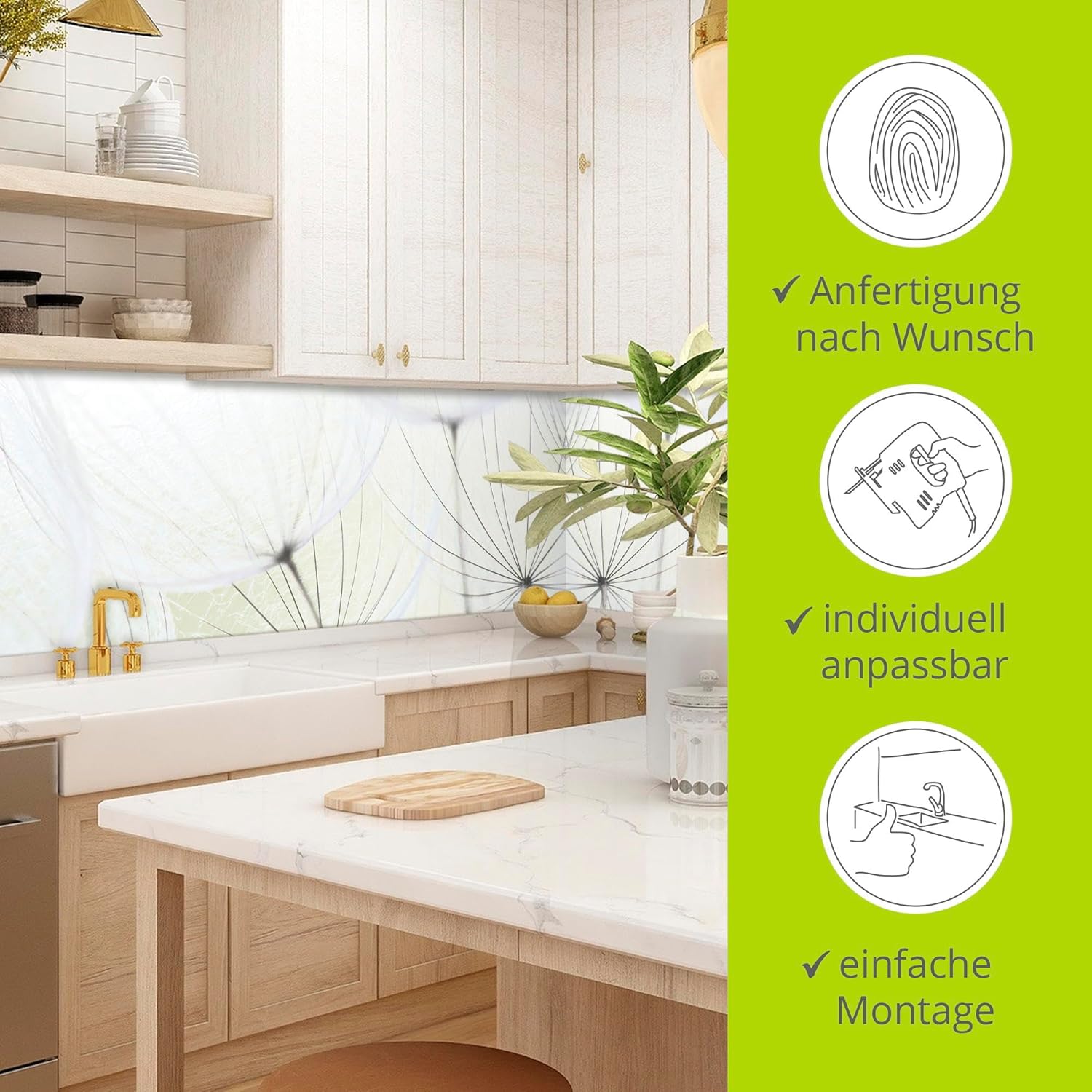 - SONDERWUNSCH: Gerne erfüllen wir Ihre individuellen Wünsche für einen Küchenspritzschutz - ob eigenes Motiv oder Wunschmass. Kontaktieren Sie uns über unser Verkäuferprofil artgalerie-bildershop