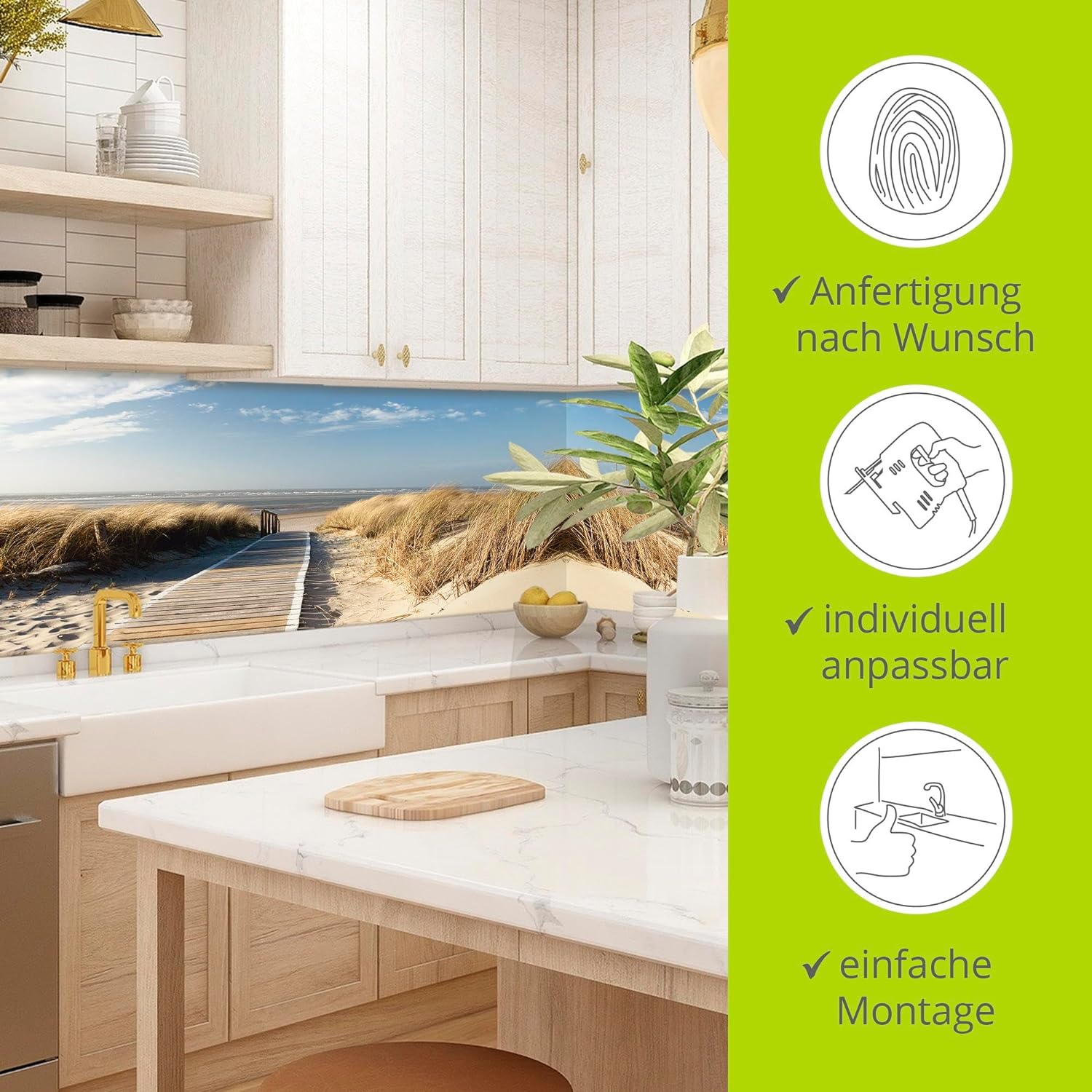 • SONDERWUNSCH: Gerne erfüllen wir Ihre individuellen Wünsche für einen Küchenspritzschutz - ob eigenes Motiv oder Wunschmass. Kontaktieren Sie uns über unser Verkäuferprofil artgalerie-bildershop
