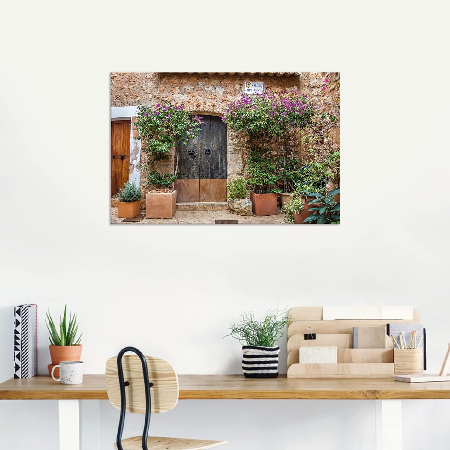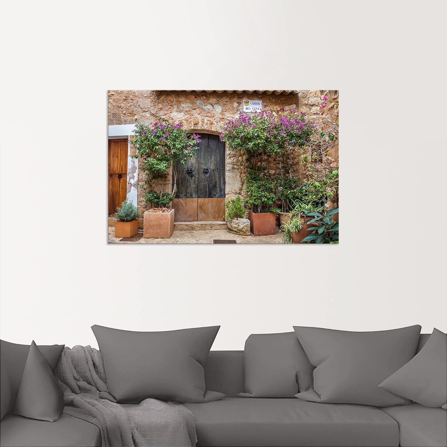 ARTland Wandbild Alu Verbundplatte für Innen & Outdoor Bild 90x60 cm Altes Haus Tür Tor Pflanzen Blu