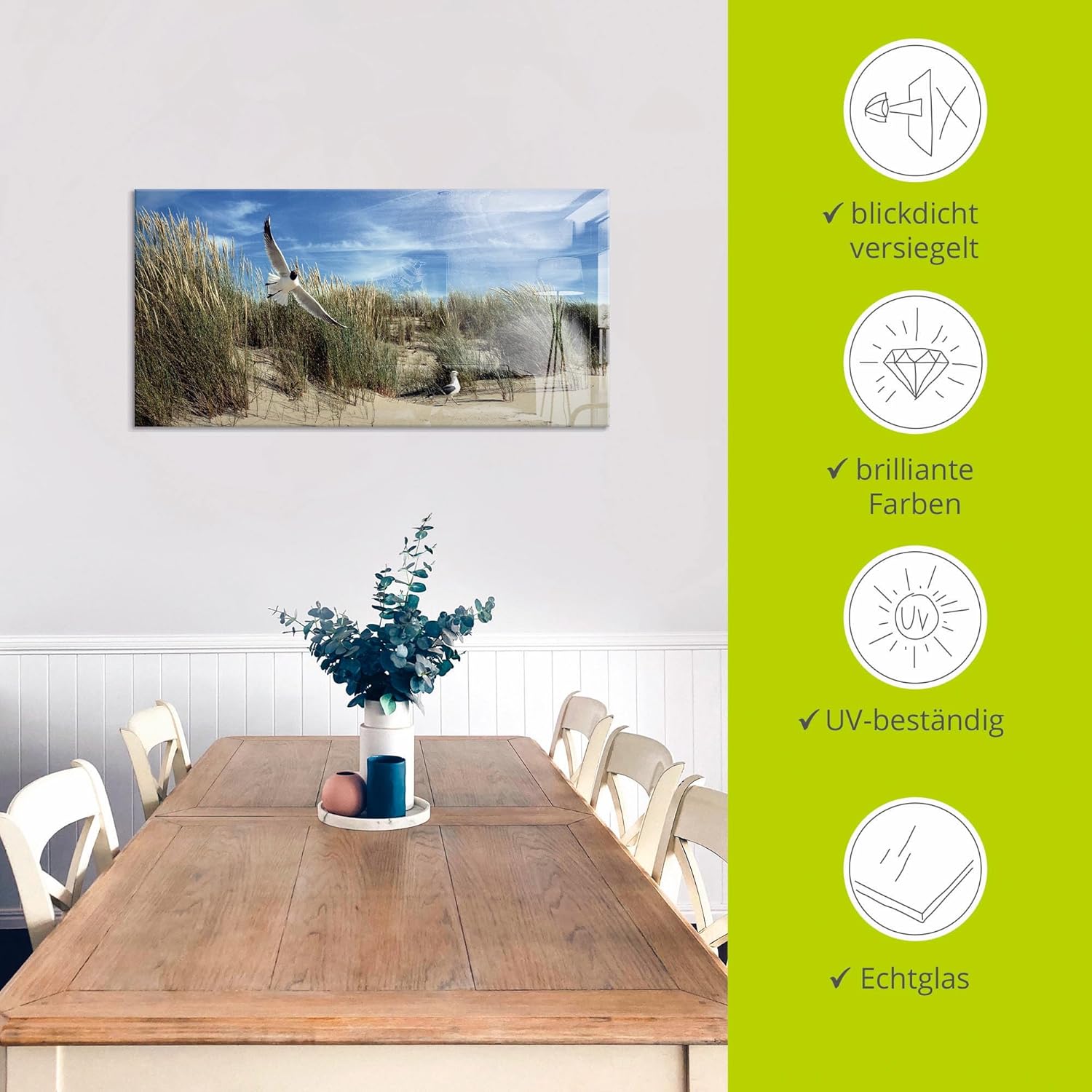 - VERWENDUNG: Unsere Glasbilder aus 4 mm Floatglas eignen sich für alle Wände in Wohnzimmer, Schlafzimmer, Esszimmer, Flur, Küche und Bad Direkt fertig zum Aufhängen geliefert