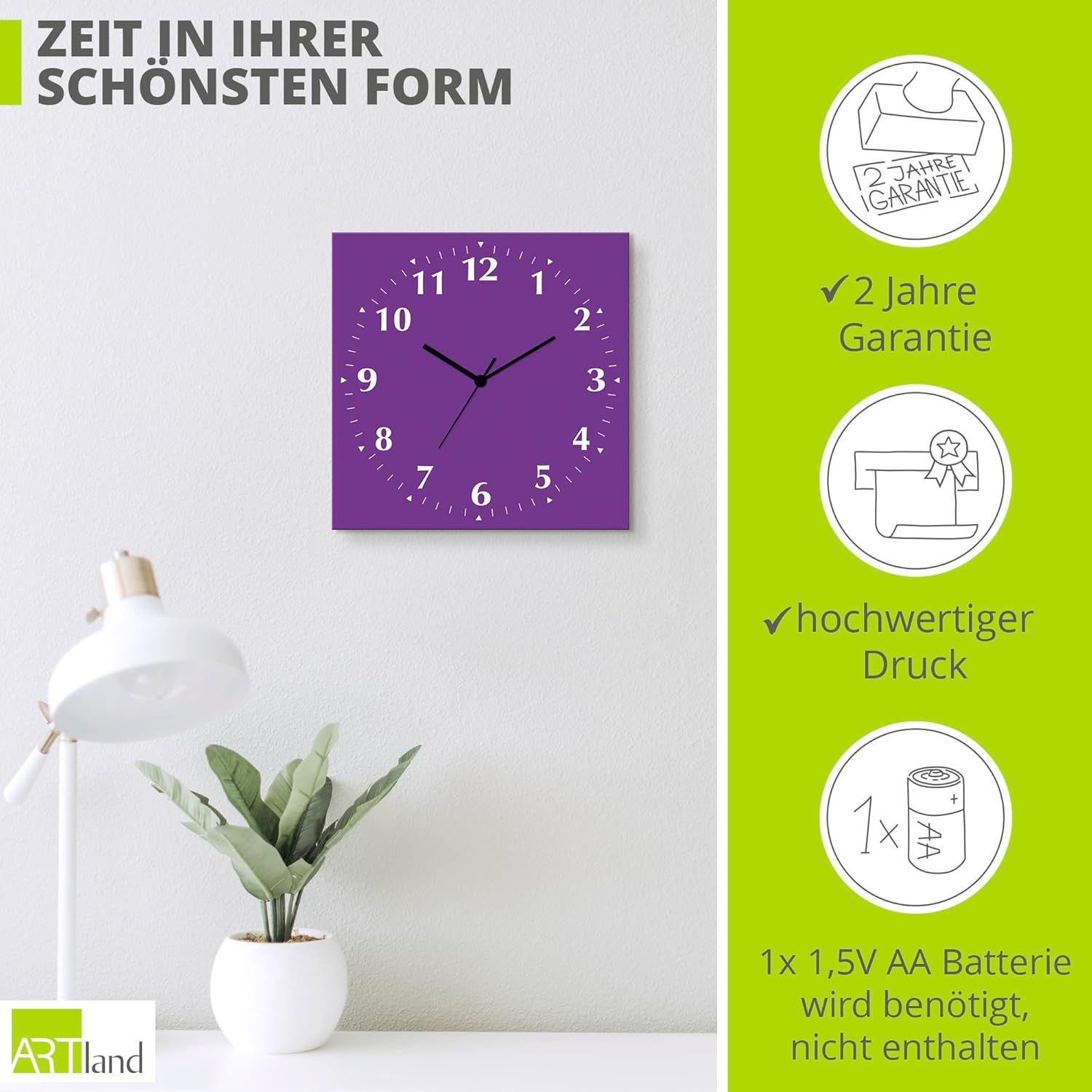 • DRUCKQUALITÄT: Das Wanduhrbild ist vorderseitig mit UV-beständigen Farben bedruckt, die nicht nur für ein farbechtes Druckergebnis sorgen, sondern auch geruchlos und langlebig sind