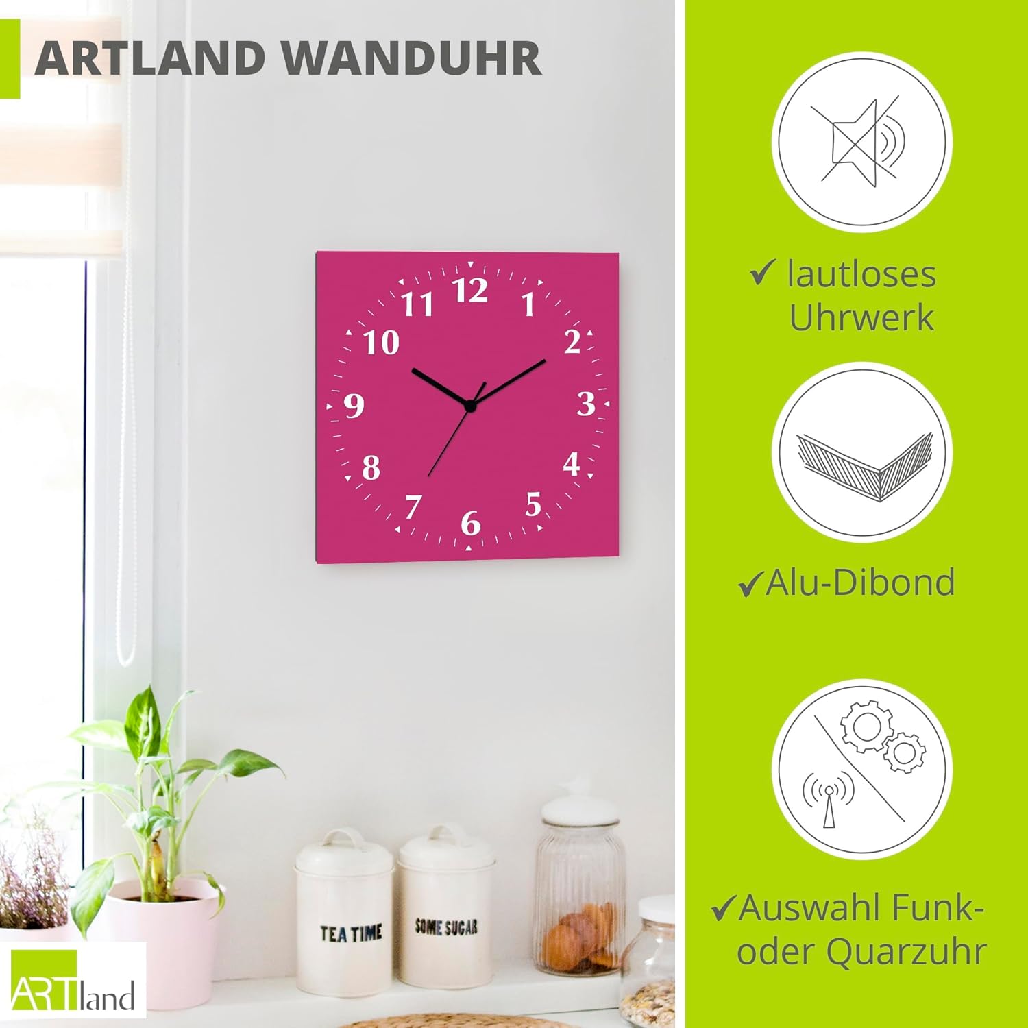 ARTLAND Wanduhr ohne Tickgeräusche Alu Funkuhr 30x30 cm Quadratisch Lautlos 12 Ziffern Farbig Schlic