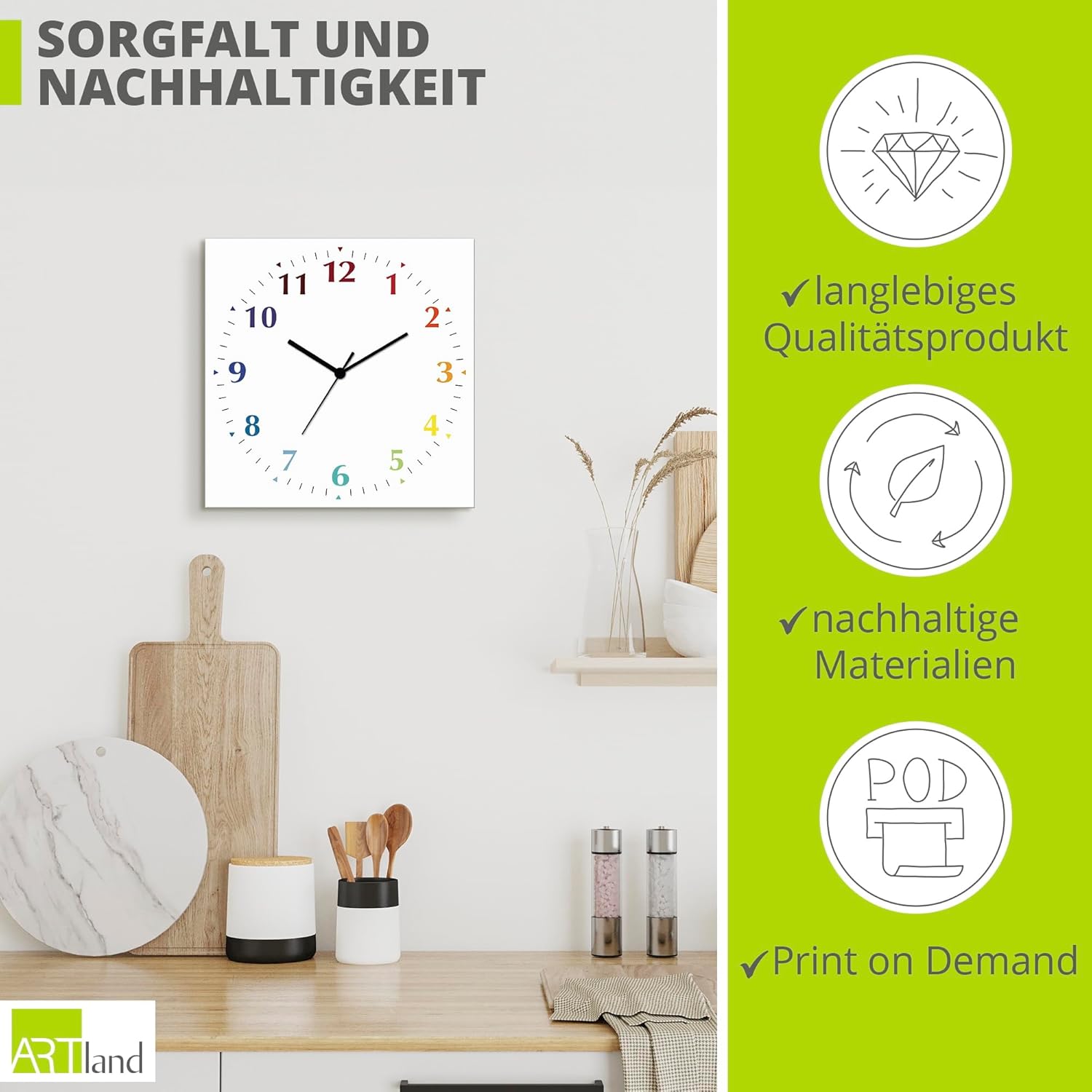 - DRUCKQUALITÄT: Das Wanduhrbild ist vorderseitig mit UV-beständigen Farben bedruckt, die nicht nur für ein farbechtes Druckergebnis sorgen, sondern auch geruchlos und langlebig sind