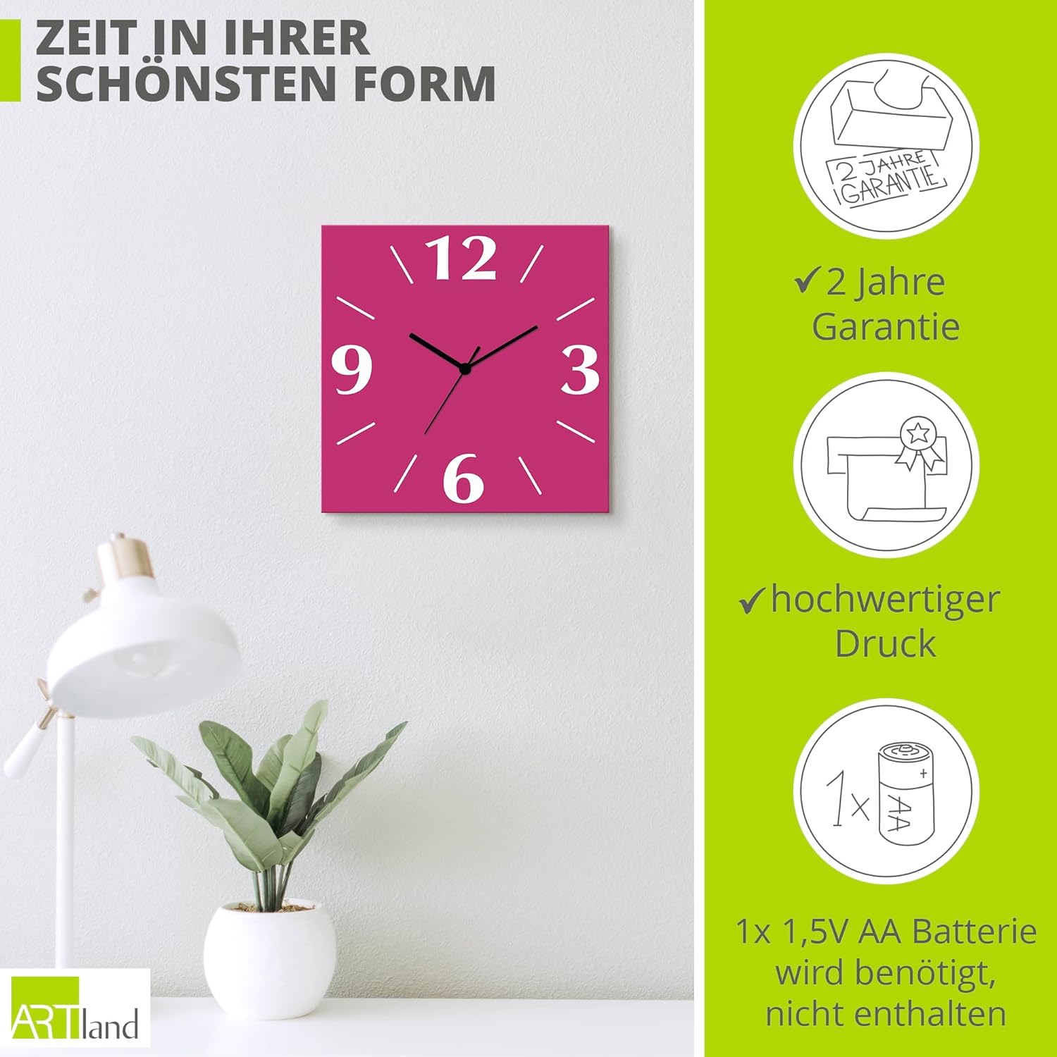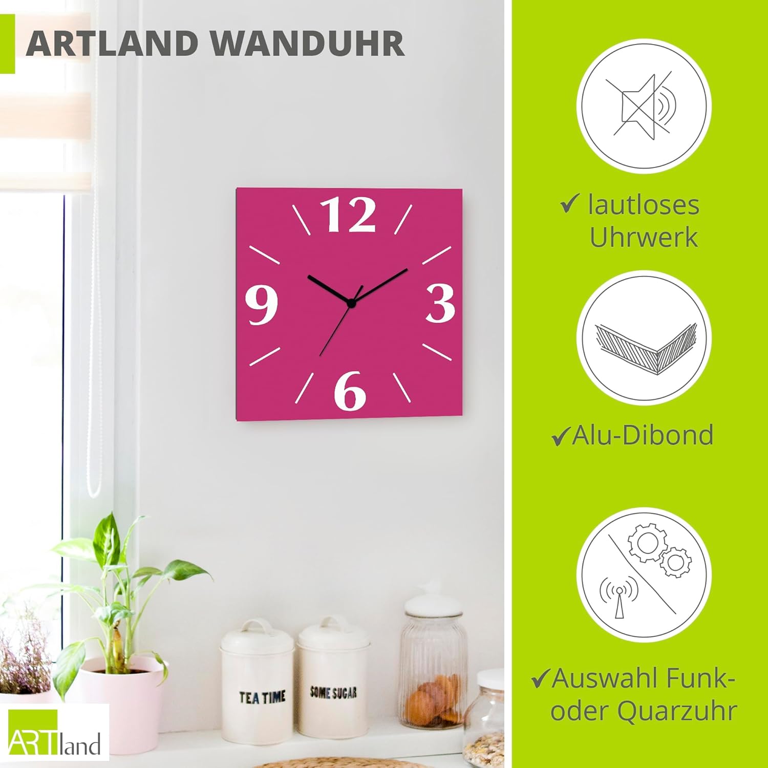 ARTLAND Wanduhr ohne Tickgeräusche Alu Funkuhr 30x30 cm Quadratisch Lautlos 4 Ziffern Farbig Schlich