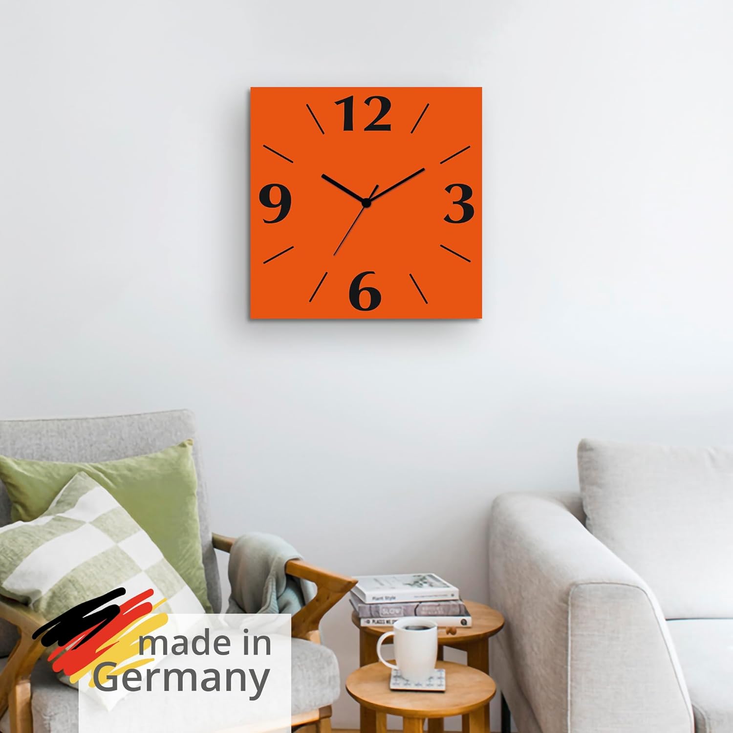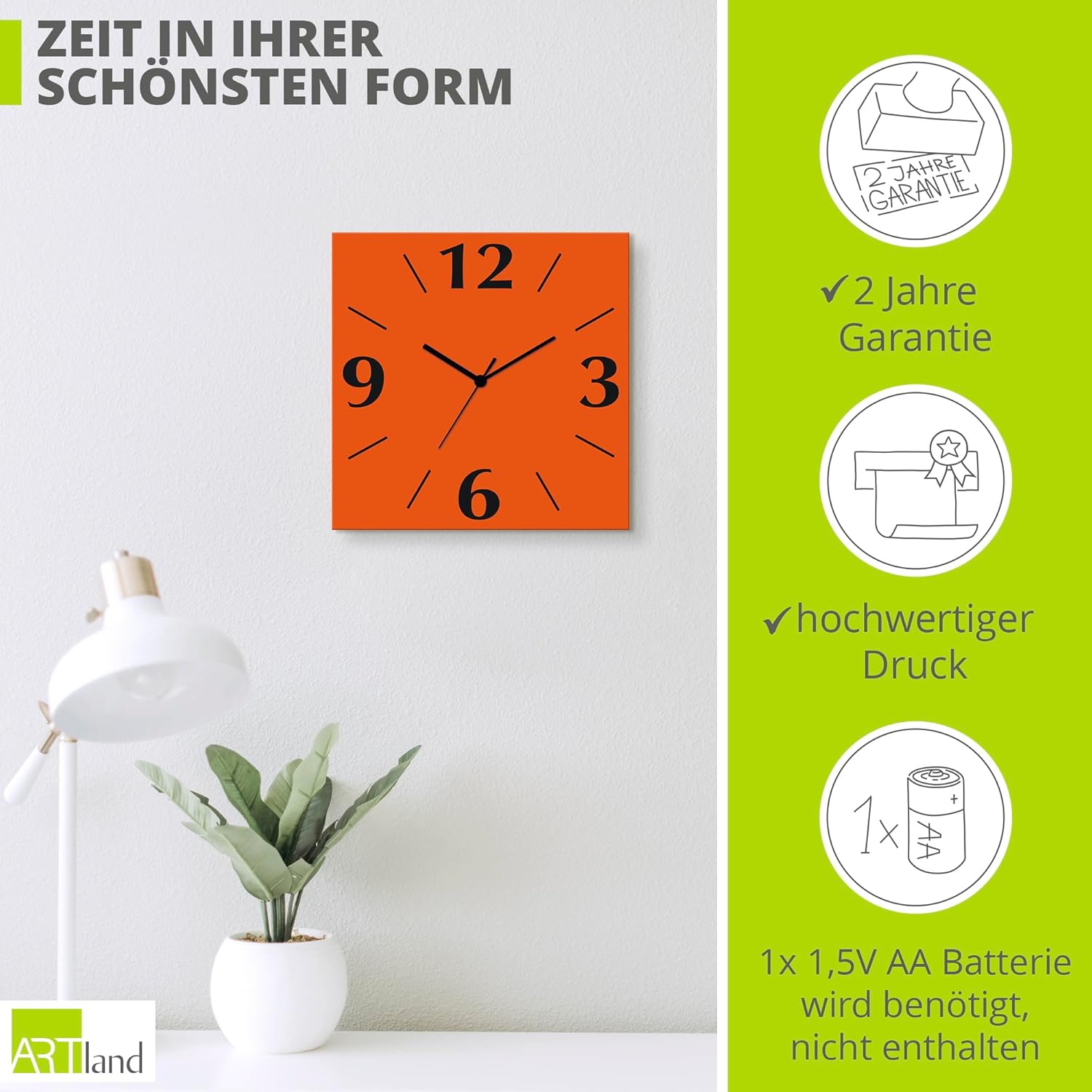 ARTLAND Wanduhr ohne Tickgeräusche Alu Quarzuhr 30x30 cm Quadratisch Lautlos 4 Ziffern Farbig Schlic
