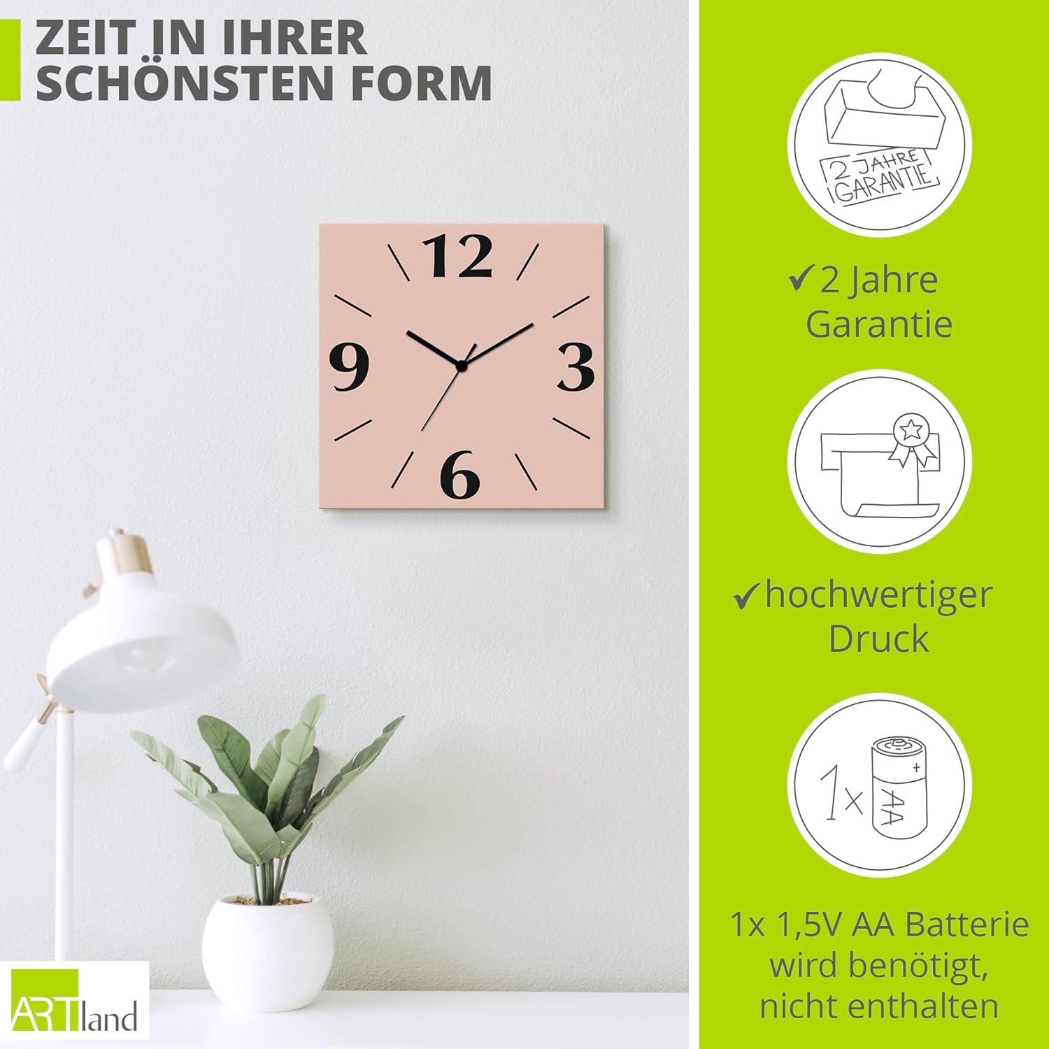 • UHRWERK: Das geräuschlose Uhrwerk läuft ohne Ticken. Nicht nur leise, sondern geräuschlos! Somit auch als Schlafzimmer Deko geeignet. Hinweis: 1x 1,5V AA Batterie wird benötigt (nicht enthalten)