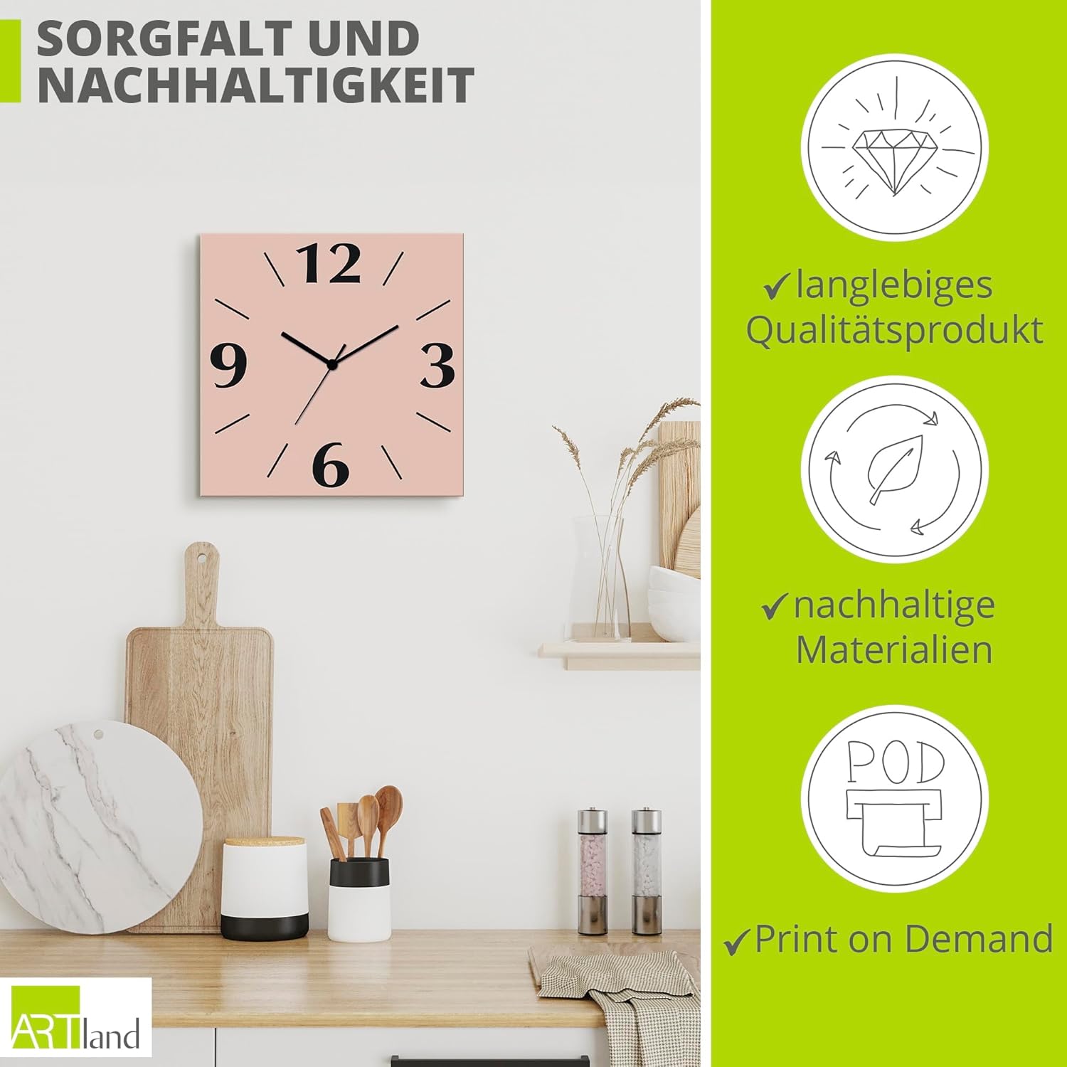 • DRUCKQUALITÄT: Das Wanduhrbild ist vorderseitig mit UV-beständigen Farben bedruckt, die nicht nur für ein farbechtes Druckergebnis sorgen, sondern auch geruchlos und langlebig sind