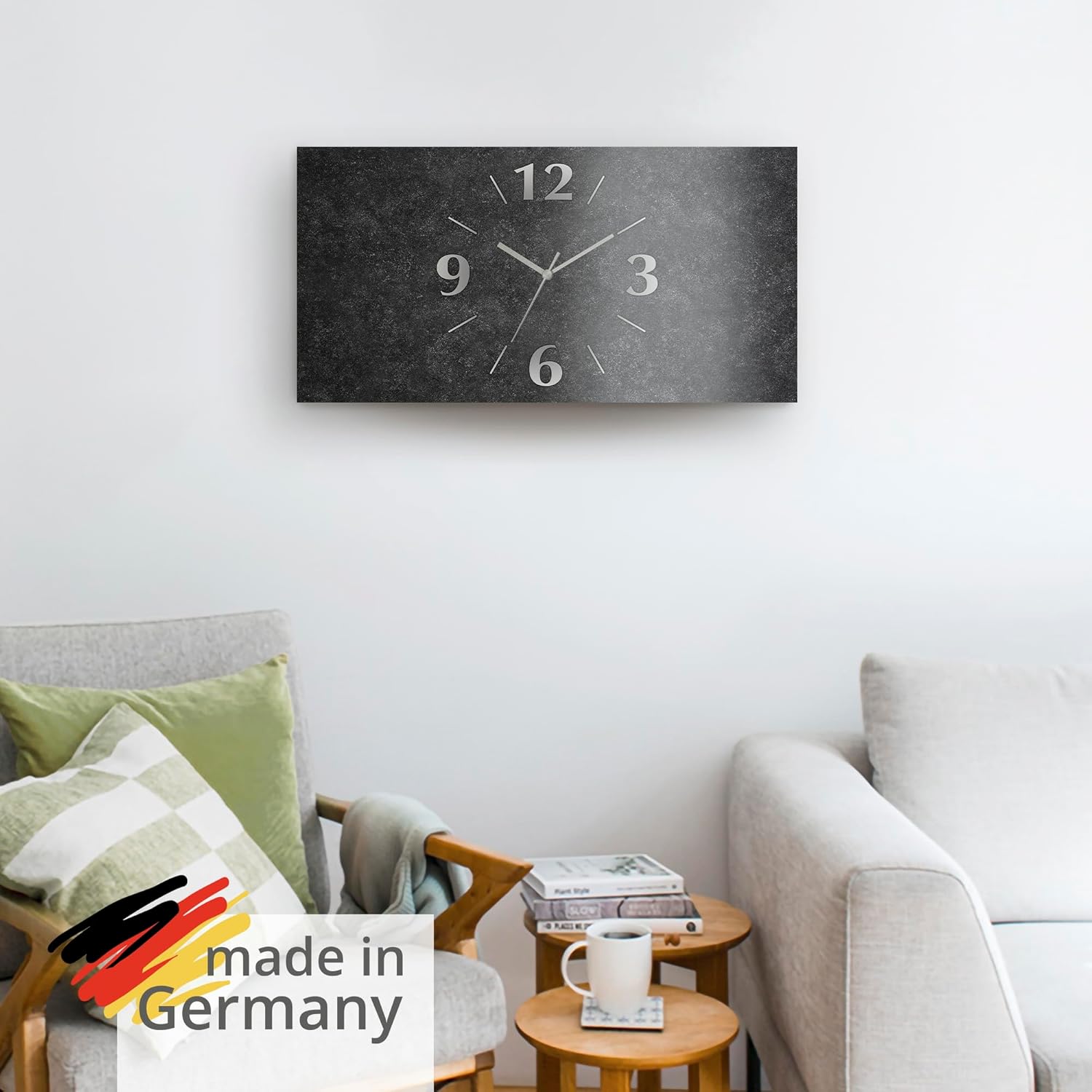 ARTLAND Wanduhr ohne Tickgeräusche Alu Quarzuhr analoge Quarzuhr 50x25 cm Granitoptik Gesteinoptik A