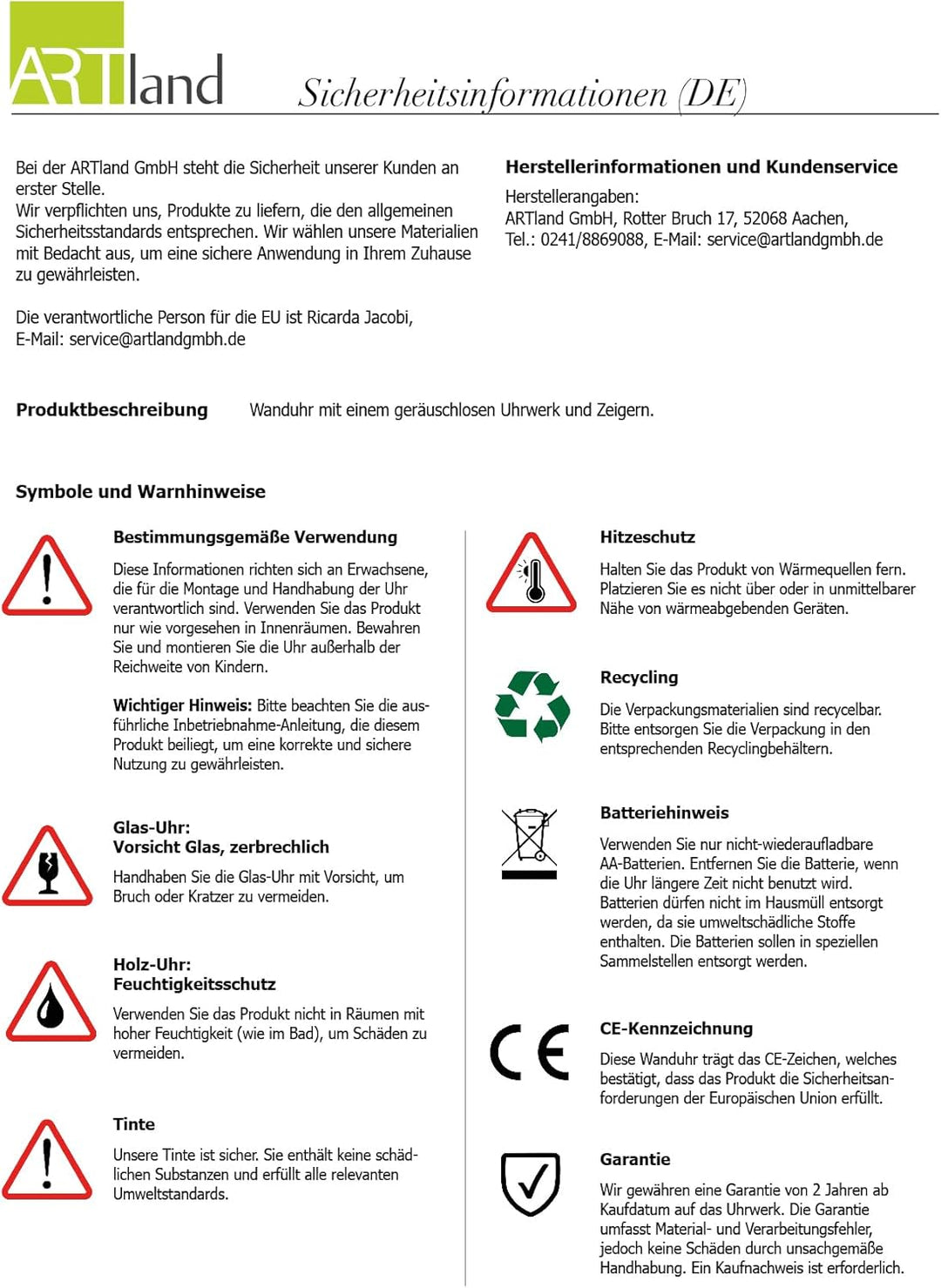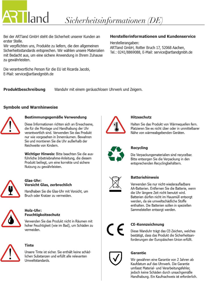- PRODUKTION: Unsere Wanduhren kommen aus eigener Produktion in Aachen - Made in Germany. Bereits seit 1967 ist unser Familienunternehmen Spezialist im Bereich Wanddekoration