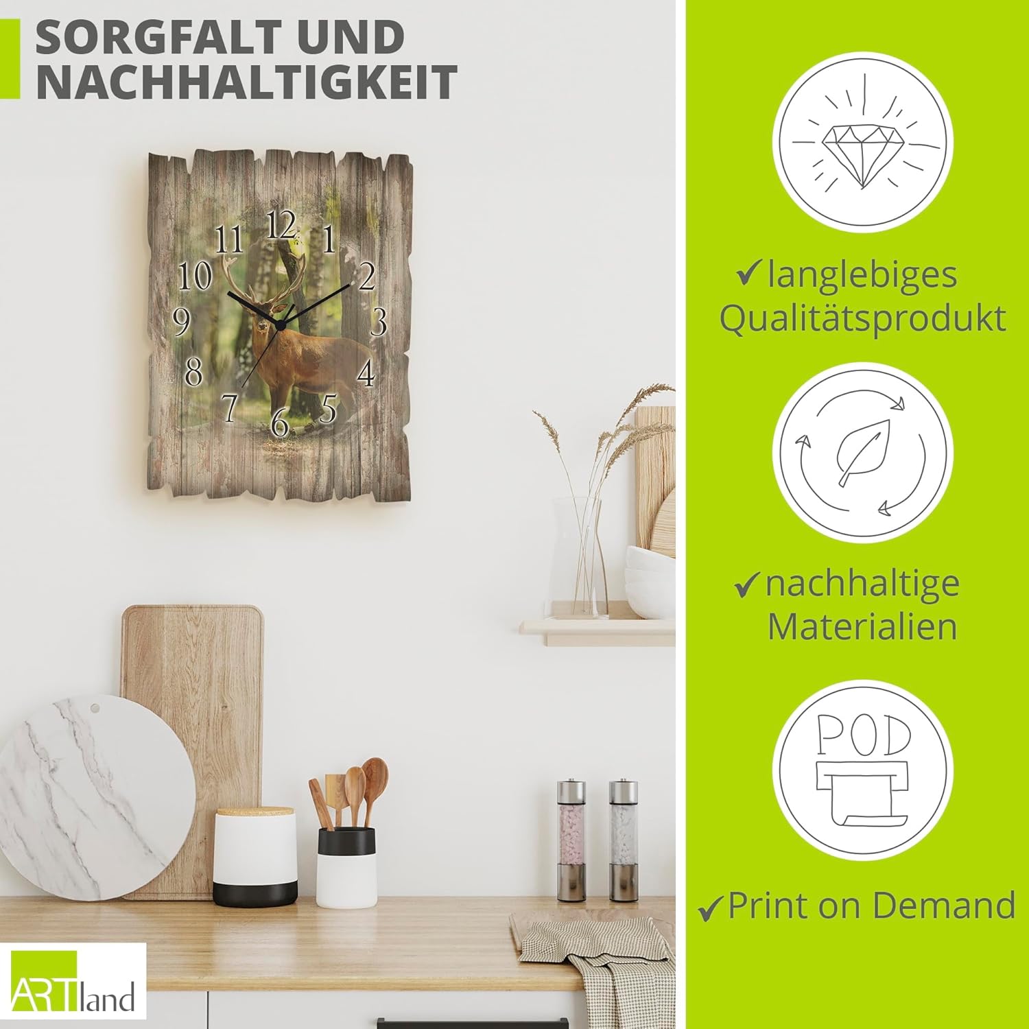 - DRUCKQUALITÄT: Die Wanduhr aus Holz ist vorderseitig mit UV-beständigen Farben bedruckt, die nicht nur für das beste Druckergebnis sorgen, sondern auch geruchlos sind