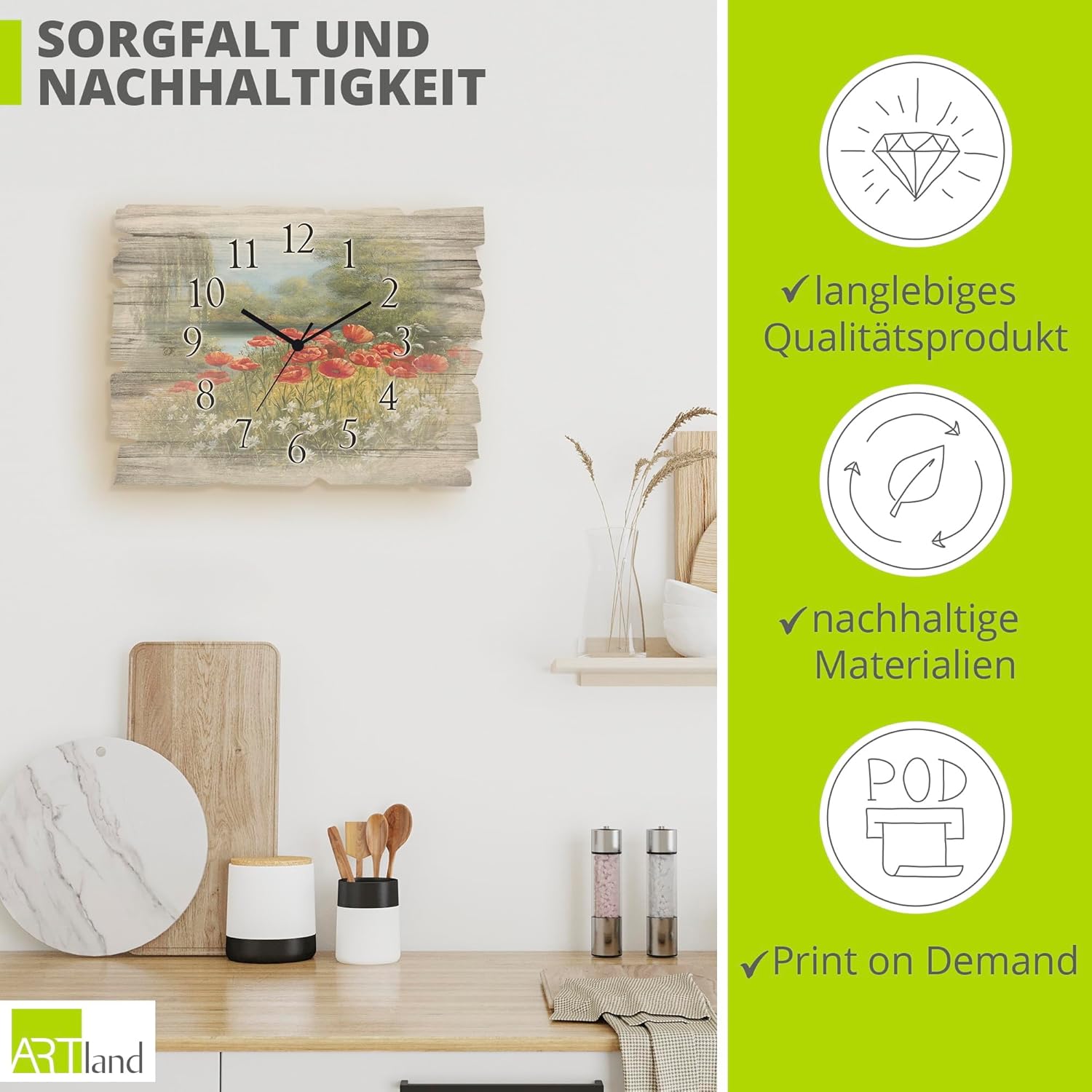 - DRUCKQUALITÄT: Die Wanduhr aus Holz ist vorderseitig mit UV-beständigen Farben bedruckt, die nicht nur für das beste Druckergebnis sorgen, sondern auch geruchlos sind